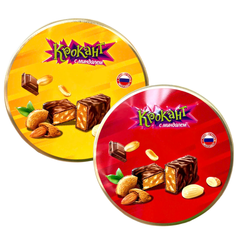 Kẹo Socola Hộp Thiếc Tròn Đậu Phộng Hạnh Nhân Krokaht Nga – 180g