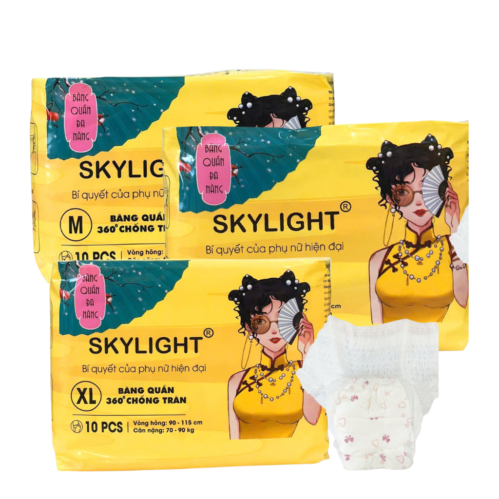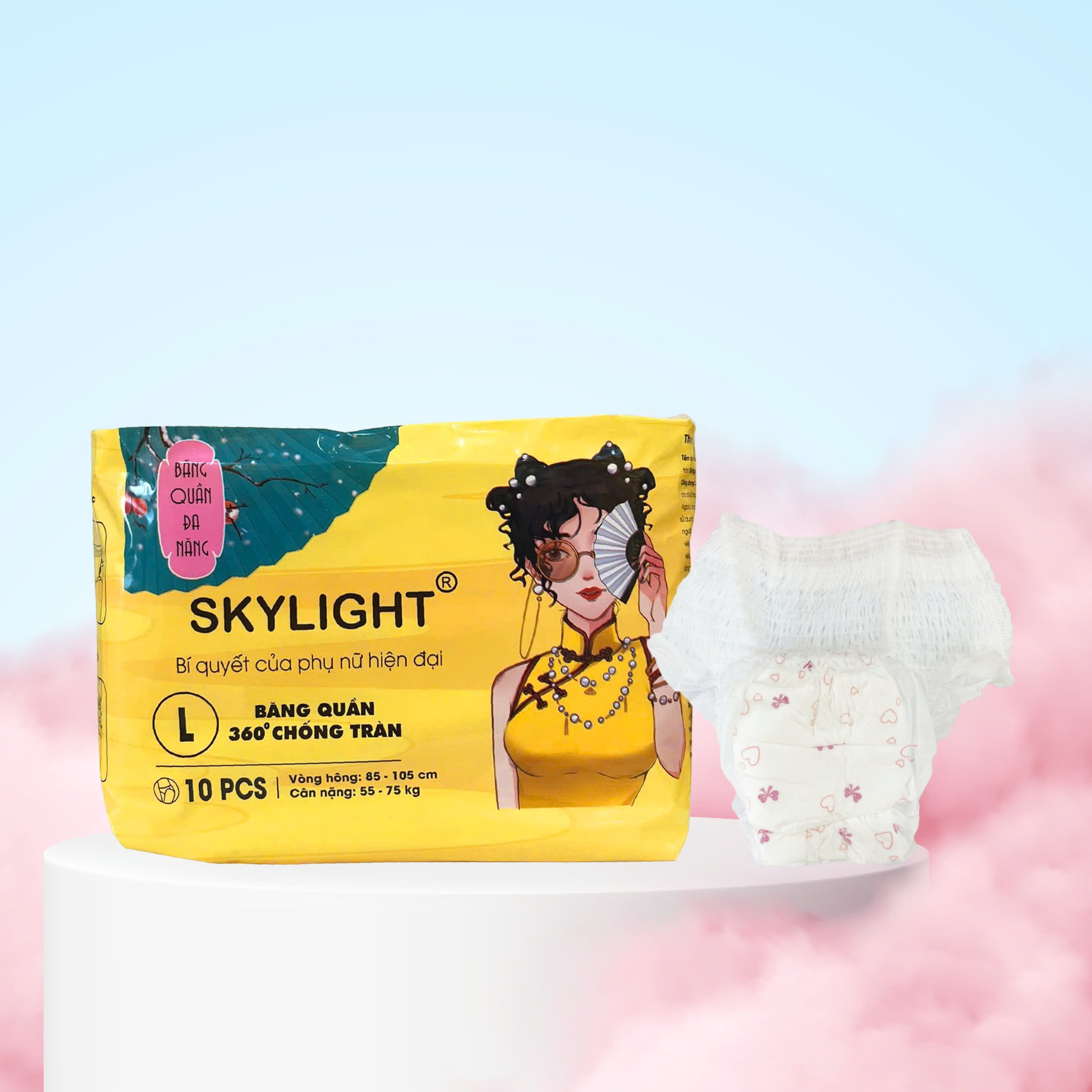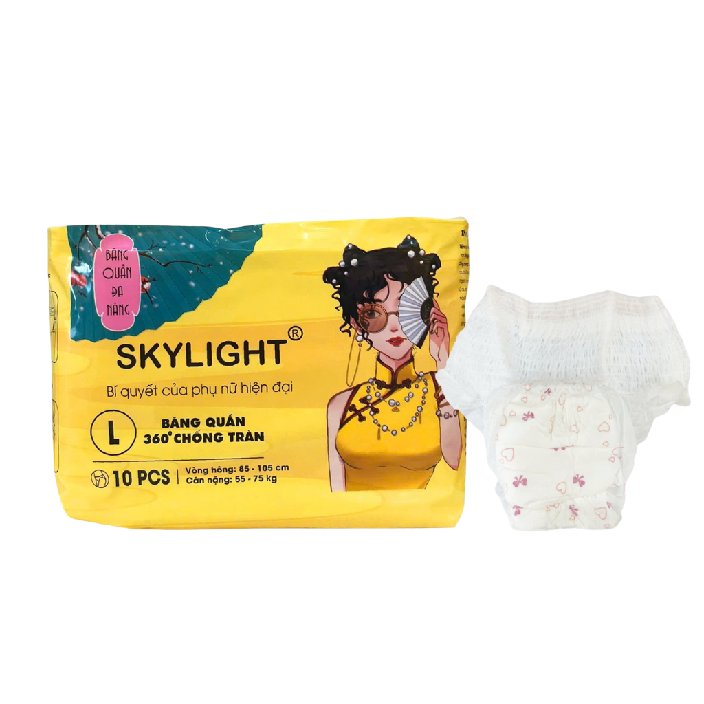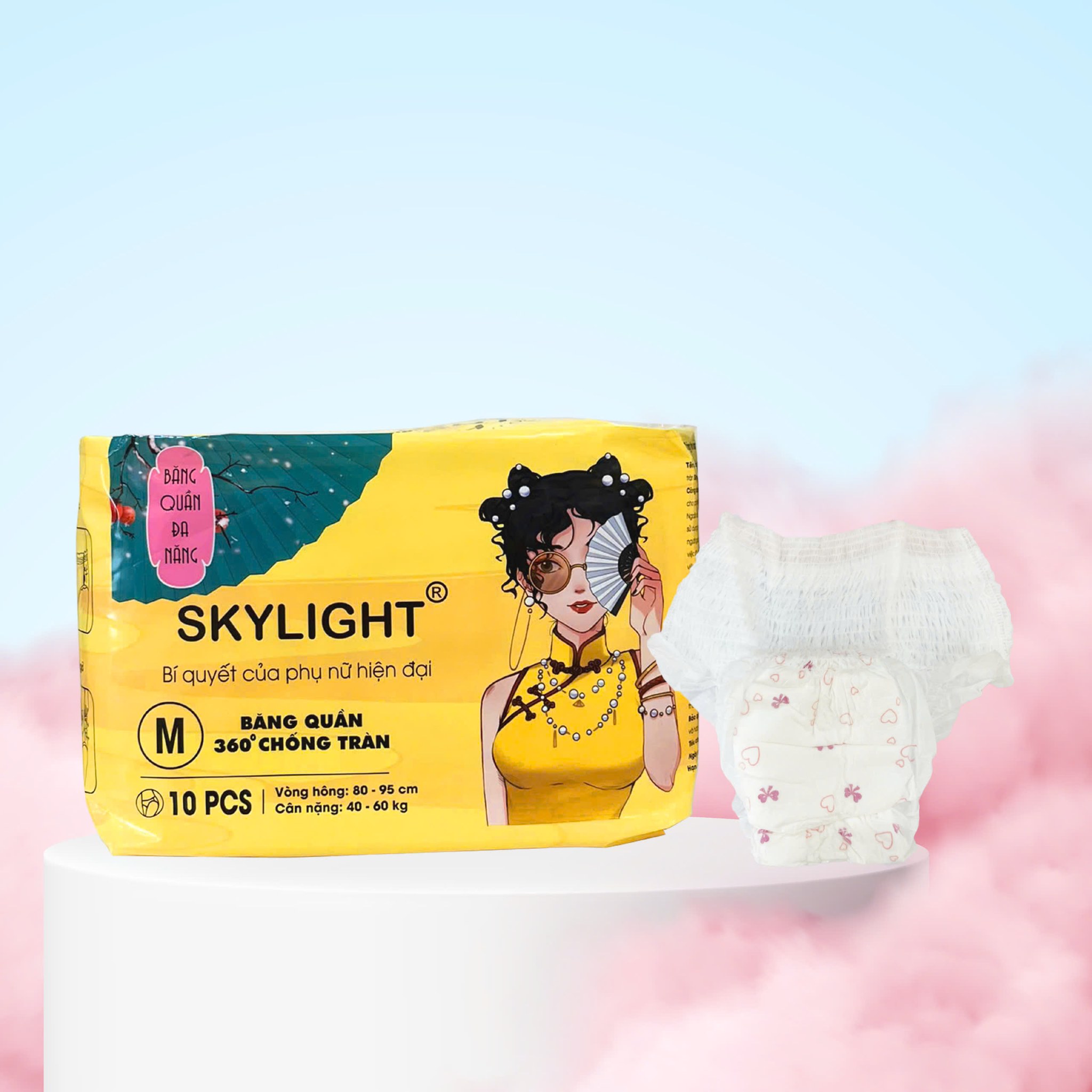 Băng quần đa năng Skylight - 10 pcs được thiết kế tiện dụng như một chiếc quần lót dùng một lần, giúp thấm hút tốt và ôm khít cơ thể, mang lại cảm giác thoải mái, tự tin trong mọi hoạt động. Sản phẩm đặc biệt phù hợp cho phụ nữ sau sinh, người vận động nhiều hoặc dùng trong những ngày cần sự bảo vệ tối ưu.