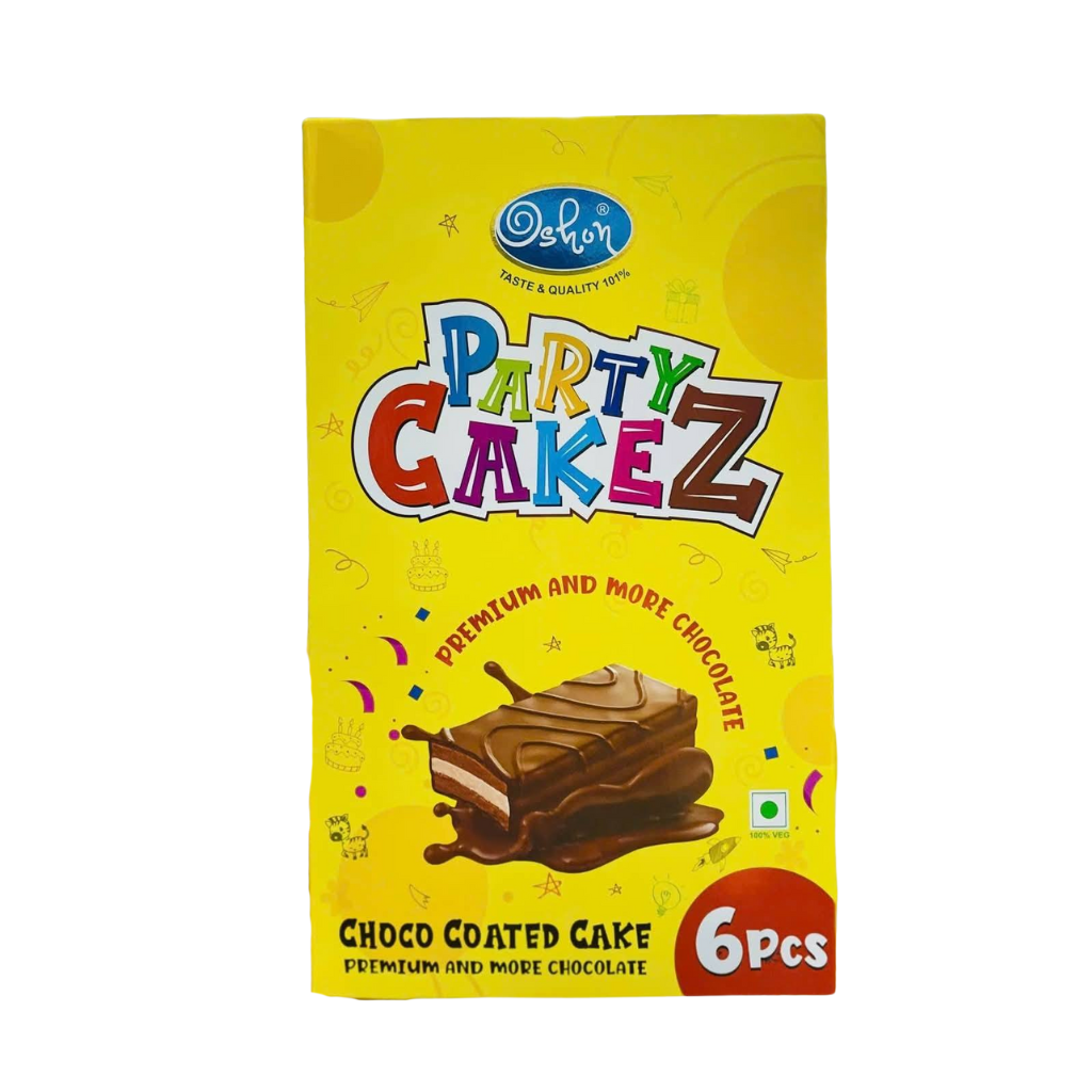 Bánh Phủ Socola Party Cakez Oshon - 6 Cái là dòng bánh ngọt đóng gói tiện lợi với lớp bánh mềm mịn bên trong, phủ socola thơm nhẹ bên ngoài. Thiết kế dạng hộp gồm 6 chiếc bánh nhỏ xinh, phù hợp dùng trong các buổi tiệc nhẹ, bữa xế hoặc làm món bánh tráng miệng cho gia đình.