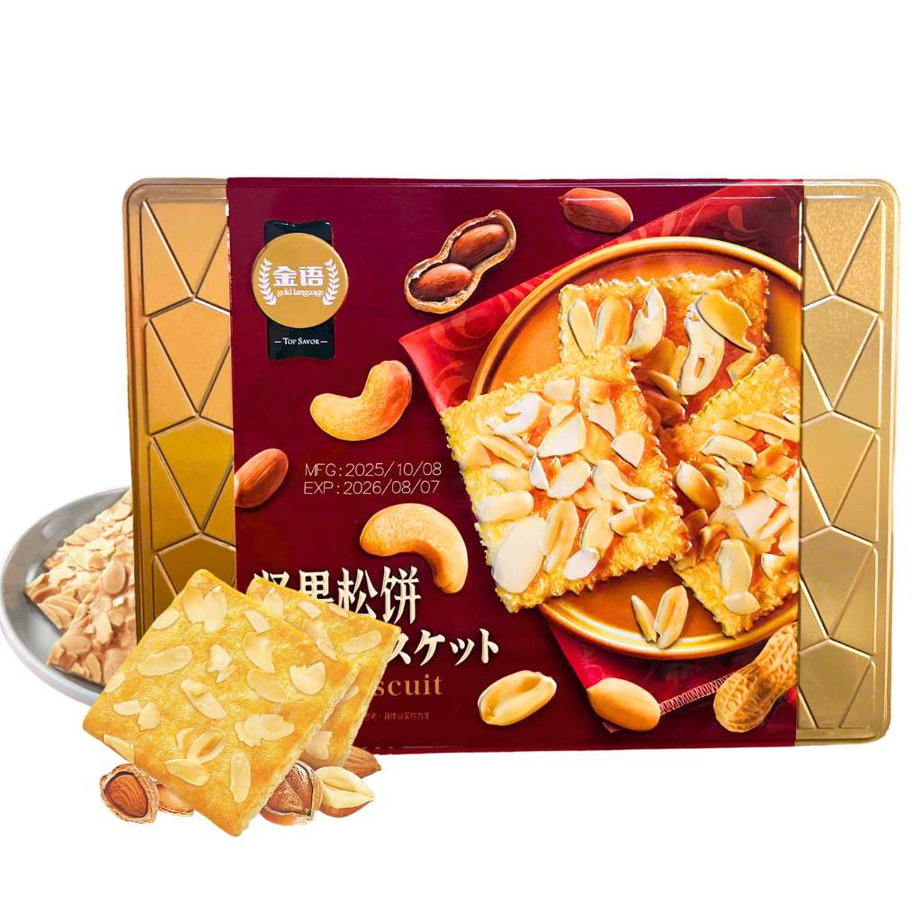 Bánh Quy Hộp Thiếc Hạt Ngũ Cốc TOP SAVOR Đài Loan – Món quà giòn ngọt đón Tết an vui