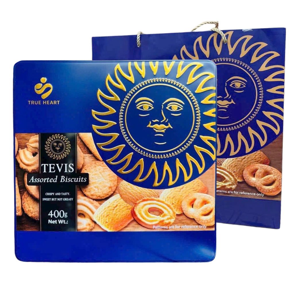 Bánh Thiếc Mặt Trời True Heart 400g Hộp Màu Xanh | Quà Biếu Tết Trang Nhã, Ý Nghĩa