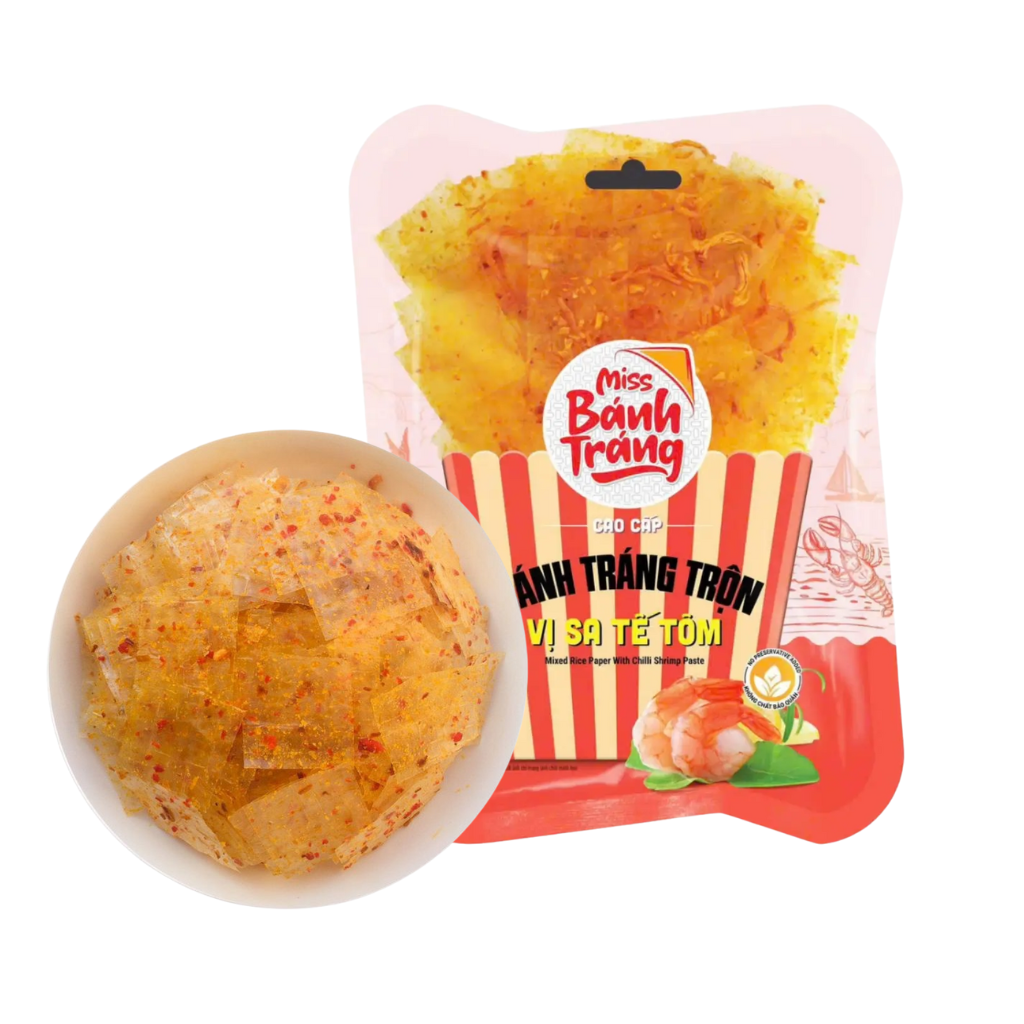 Bánh tráng trộn Miss Nhiều Vị là món ăn vặt hấp dẫn, mang đậm hương vị tuổi thơ với sự kết hợp hài hòa giữa bánh tráng dai ngon cùng nhiều loại gia vị đặc trưng. Mỗi gói đều được chế biến sẵn, tiện lợi để bạn thưởng thức ngay khi thèm.