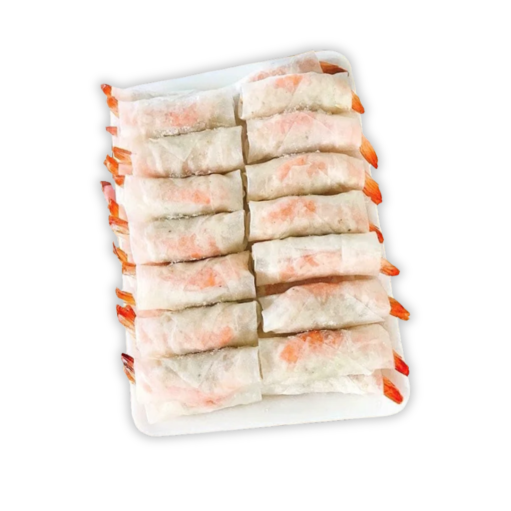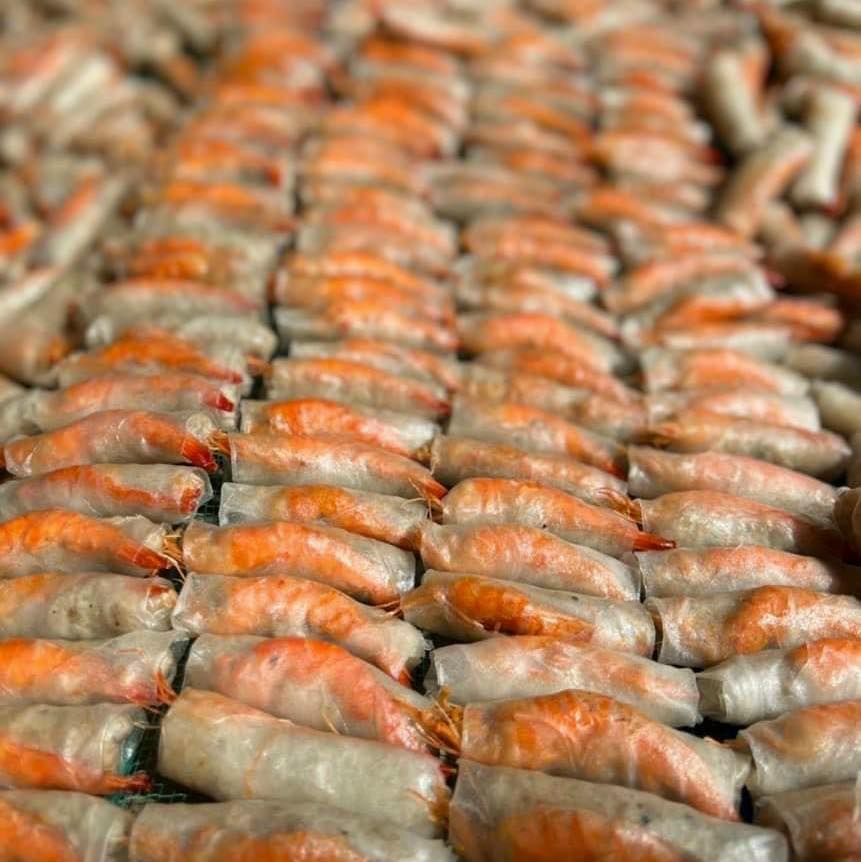 Vỏ bánh tráng giòn tan, thịt tôm thơm ngọt, đậm đà hương vị biển