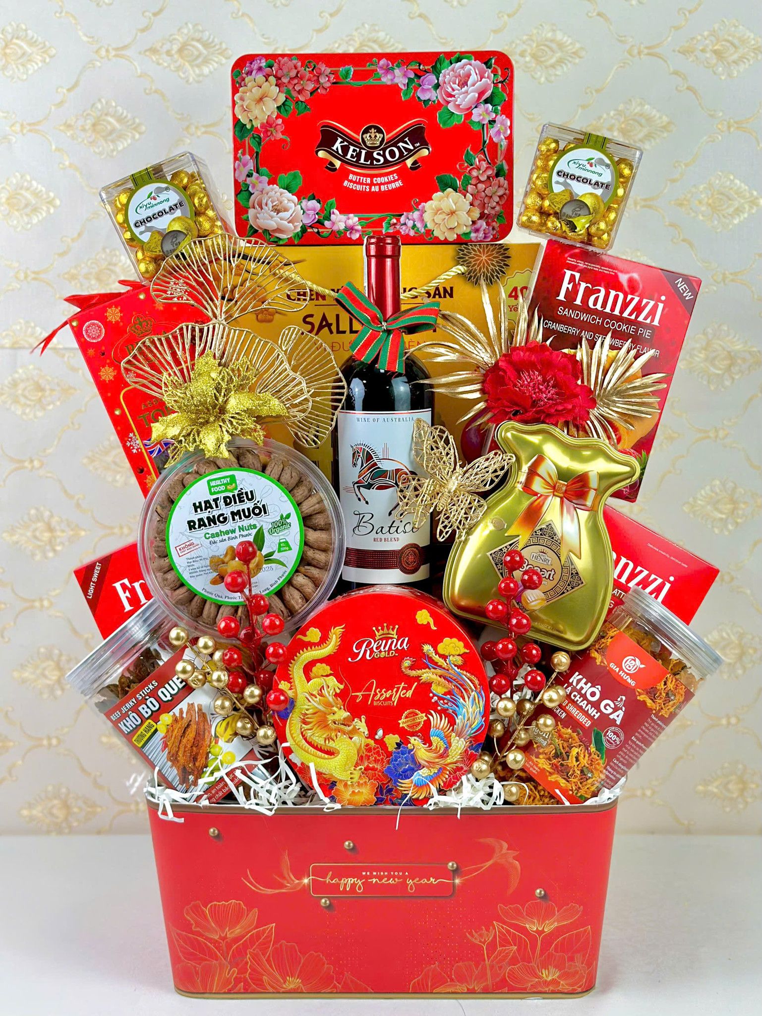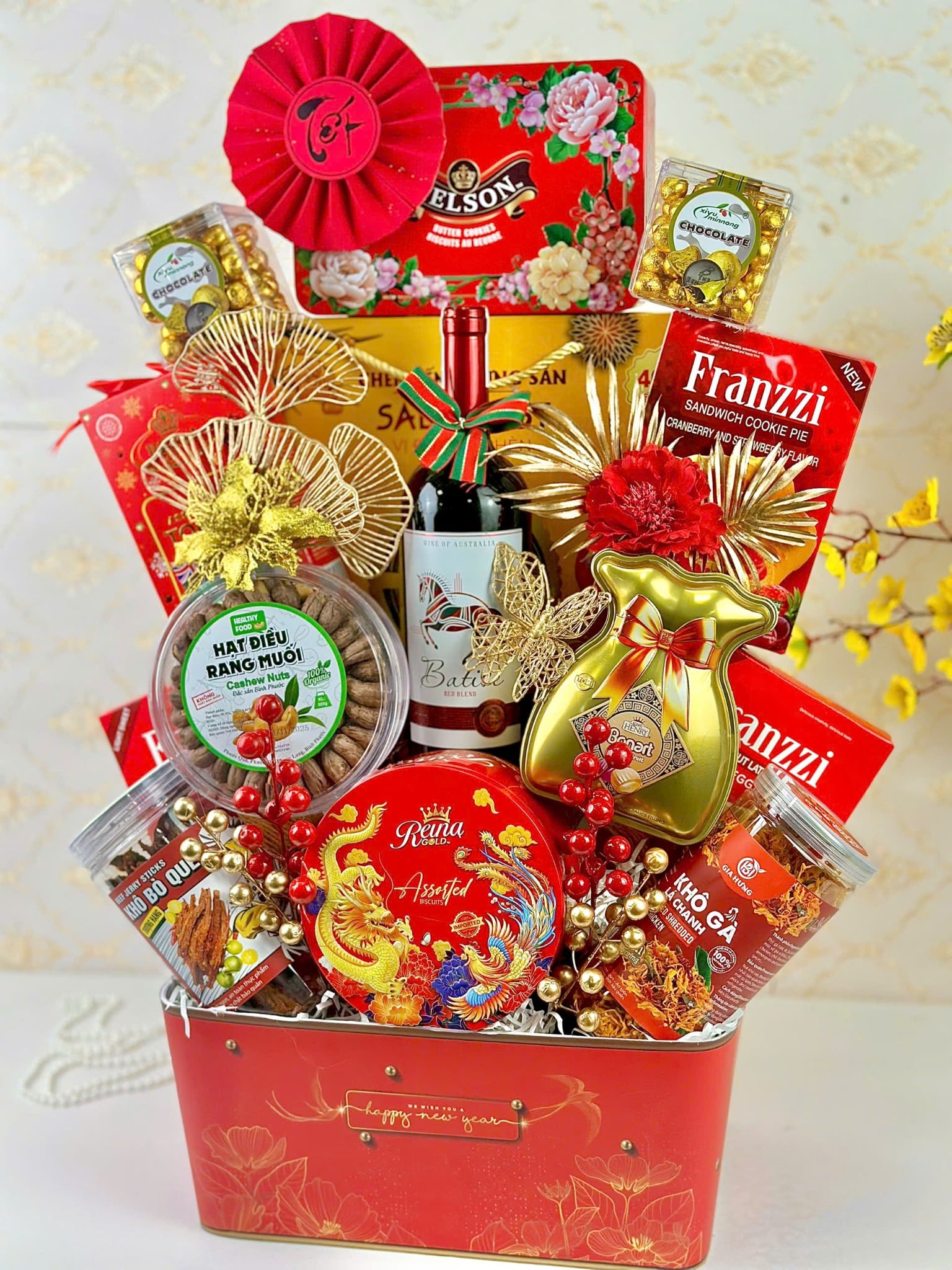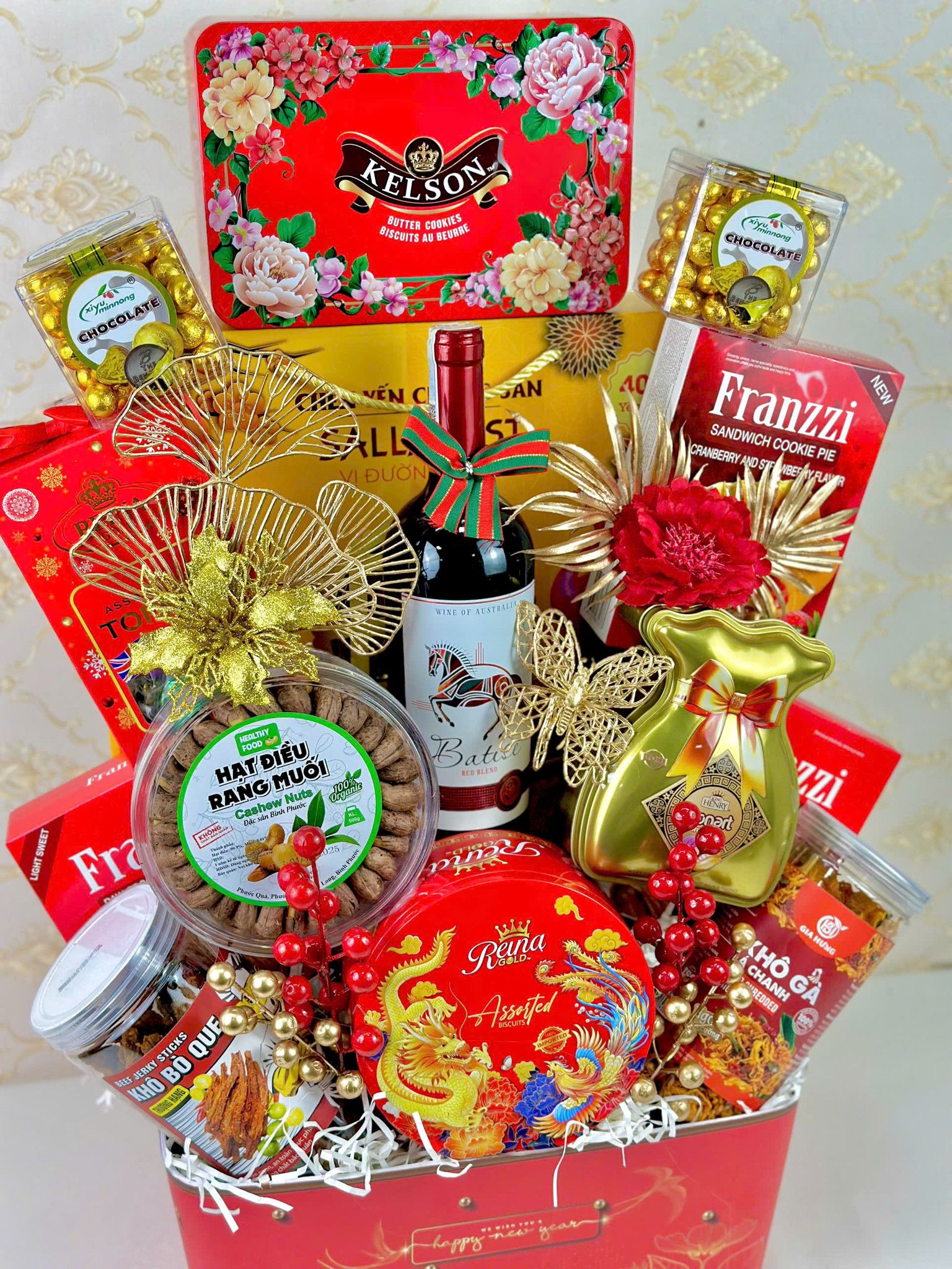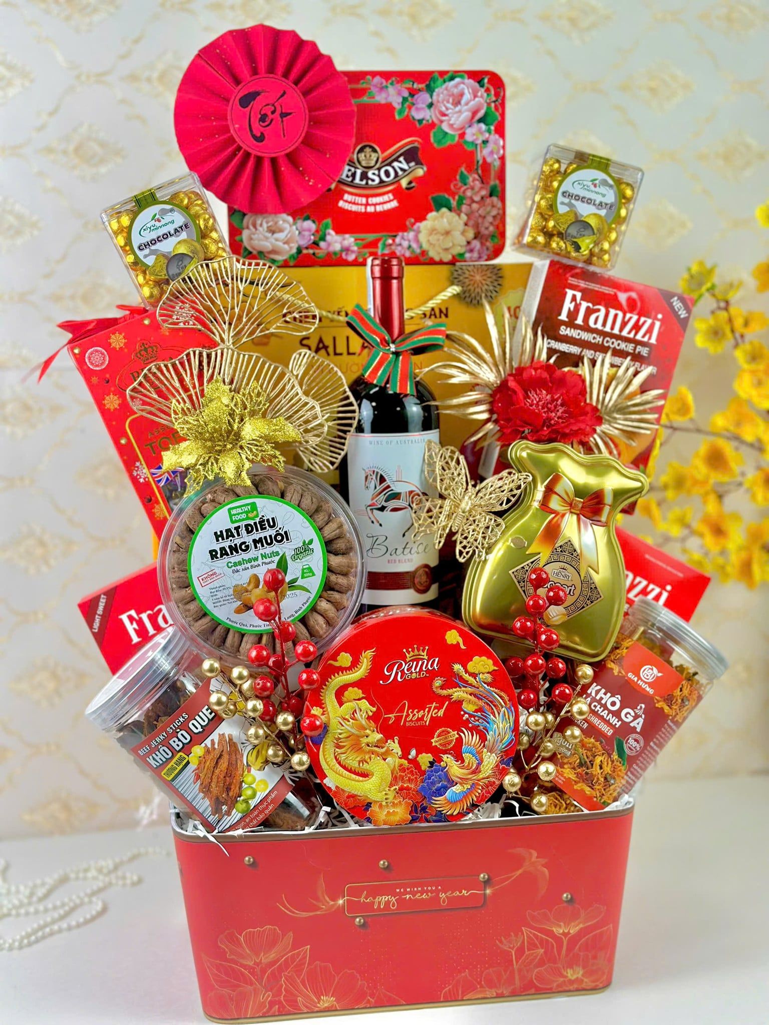 “Giỏ Quà Tết Cao Cấp 2026 – Xuân Phồn Vinh” không chỉ là món quà biếu sang trọng mà còn thay bạn gửi lời chúc tài lộc – an khang – may mắn đến đối tác và đội ngũ nhân viên trong dịp năm mới.
