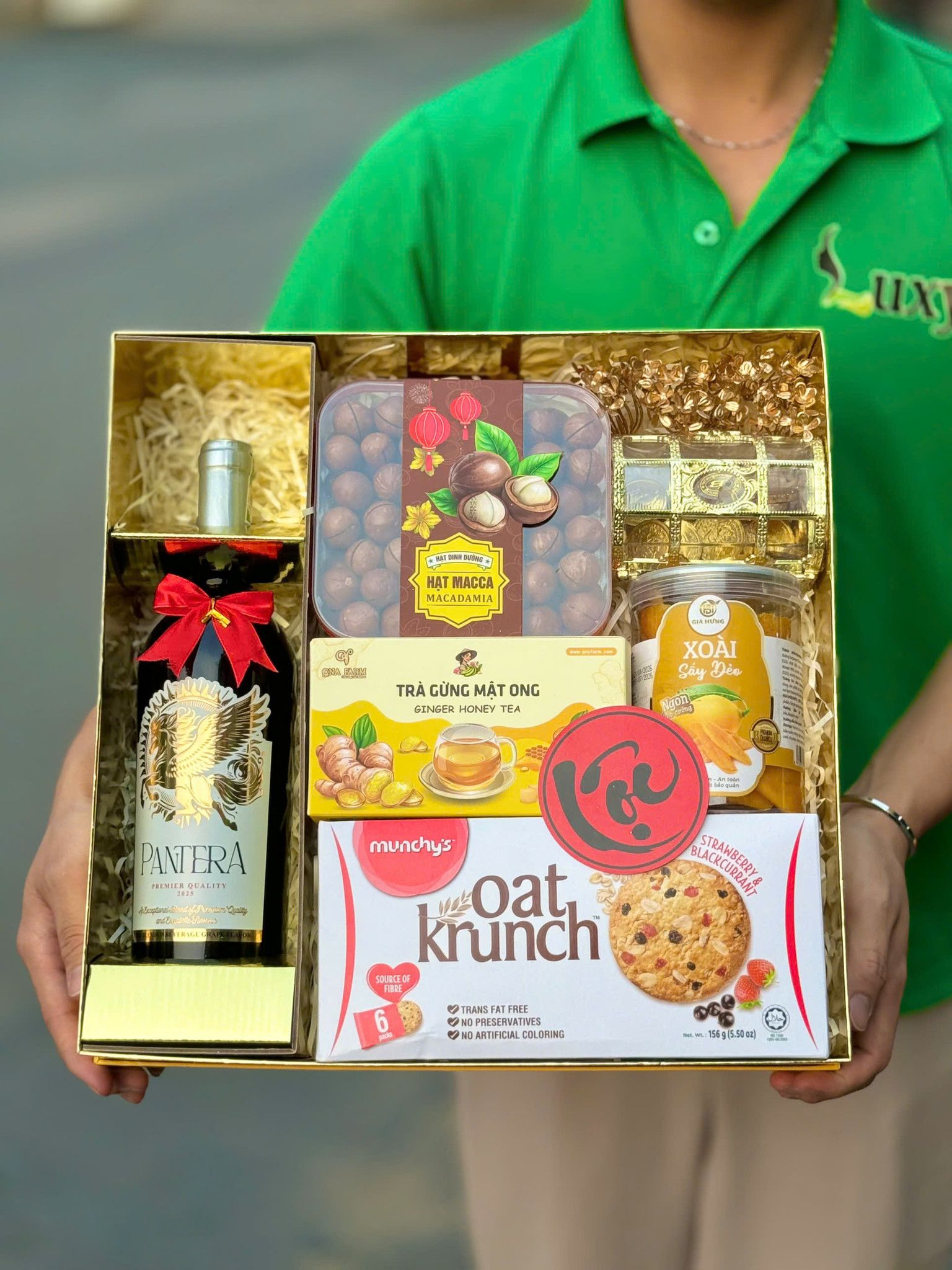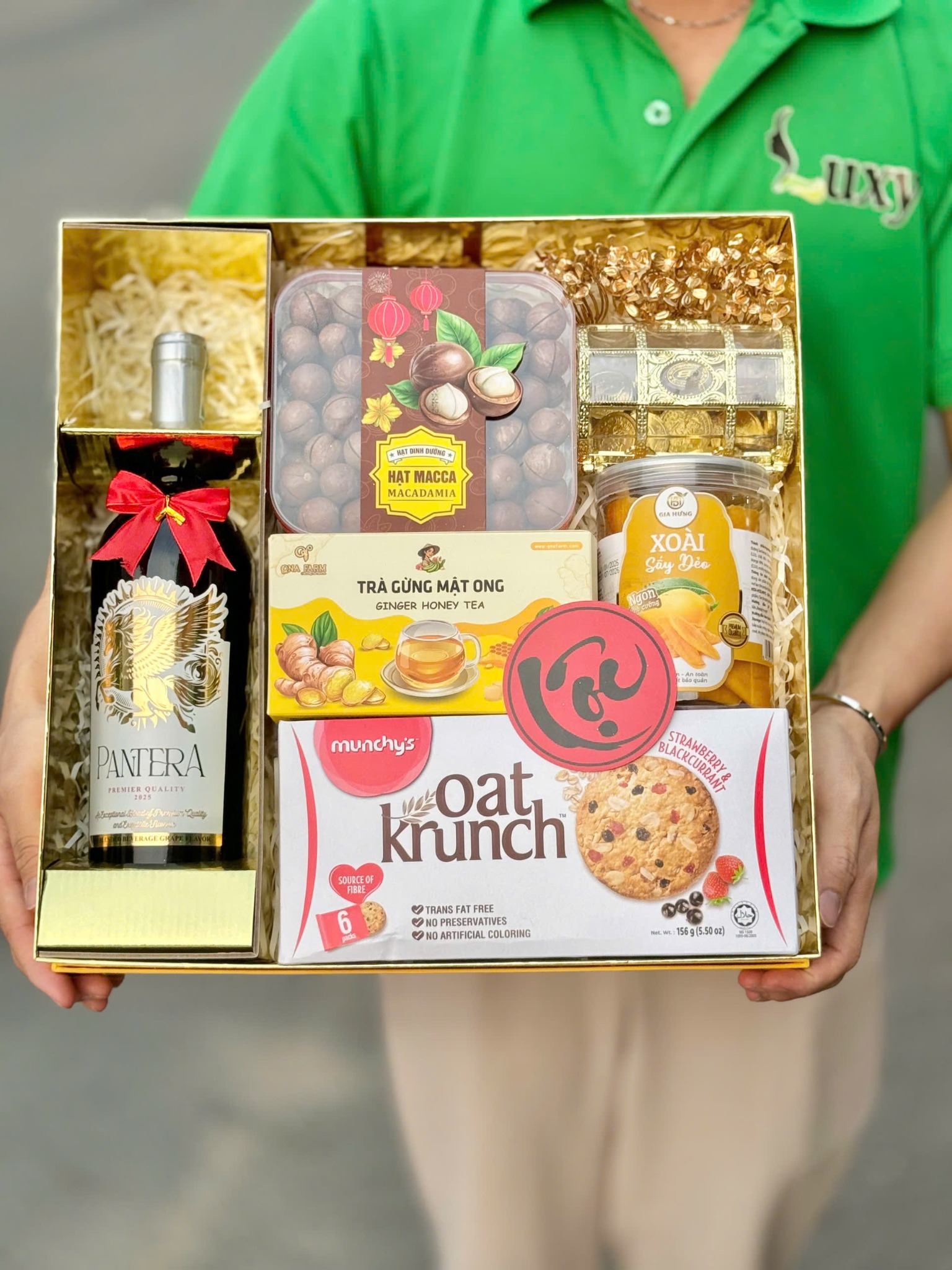Các sản phẩm được chọn lọc từ thương hiệu uy tín, kết hợp hài hòa giữa dinh dưỡng, hương vị dễ dùng và ý nghĩa tài lộc đầu năm. Trường hợp một số mặt hàng biến động cận Tết, Luxy sẽ linh hoạt thay thế bằng sản phẩm tương đương về giá trị và hình thức, vẫn đảm bảo tổng thể hộp quà sang trọng, đẹp mắt và đúng tinh thần Kim Lộc Đại Phát.