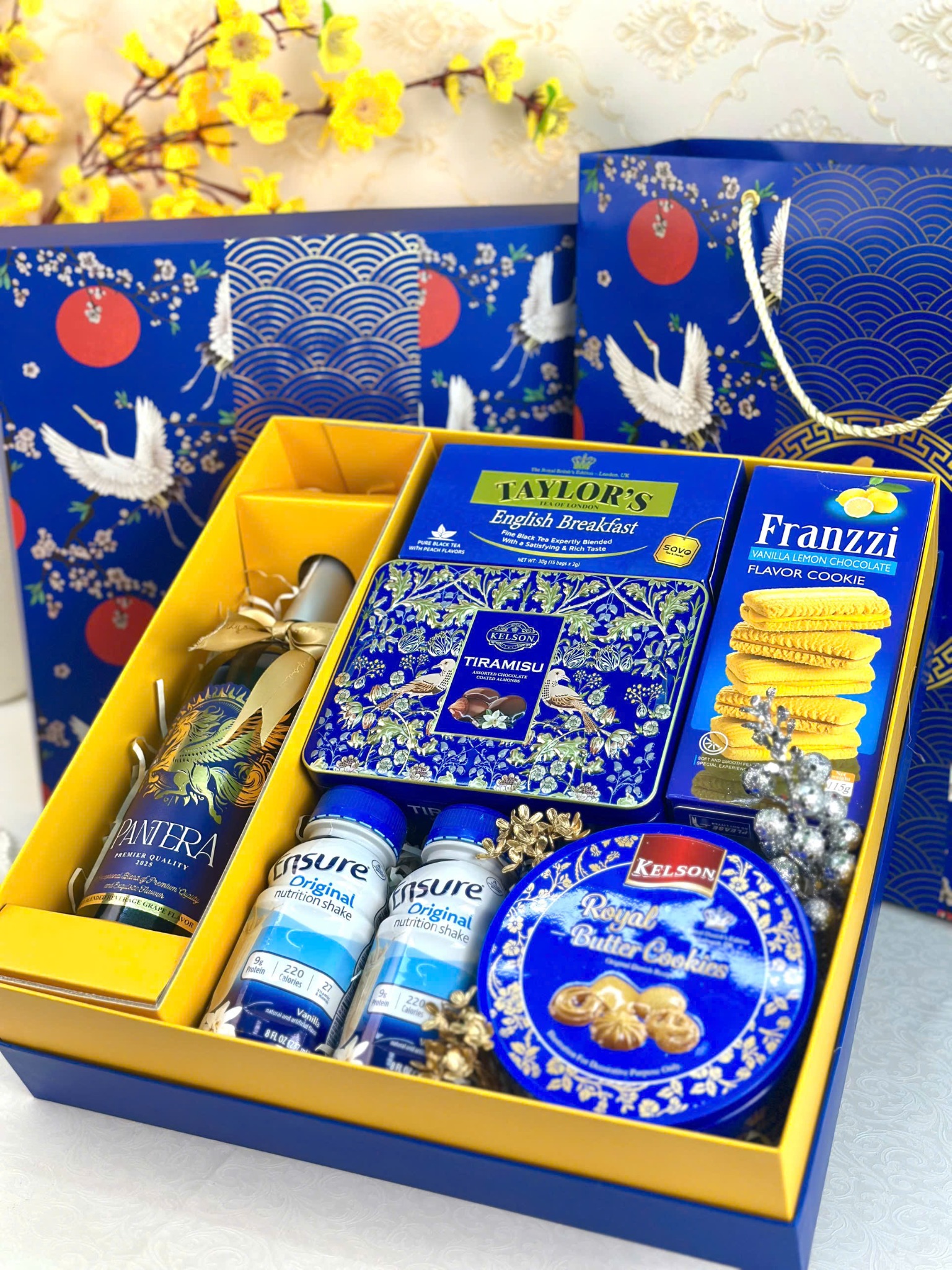 Nếu bạn đang tìm Hộp Quà Tết Cao Cấp 2026 – Phú Quý Thịnh với tone xanh dương sang trọng, set quà gồm vang – bánh – trà – yến – socola – kẹo cao cấp, hãy ghé ngay Siêu Thị Luxy – nơi hội tụ hàng trăm mẫu giỏ quà Tết cao cấp, hiện đại và ý nghĩa.