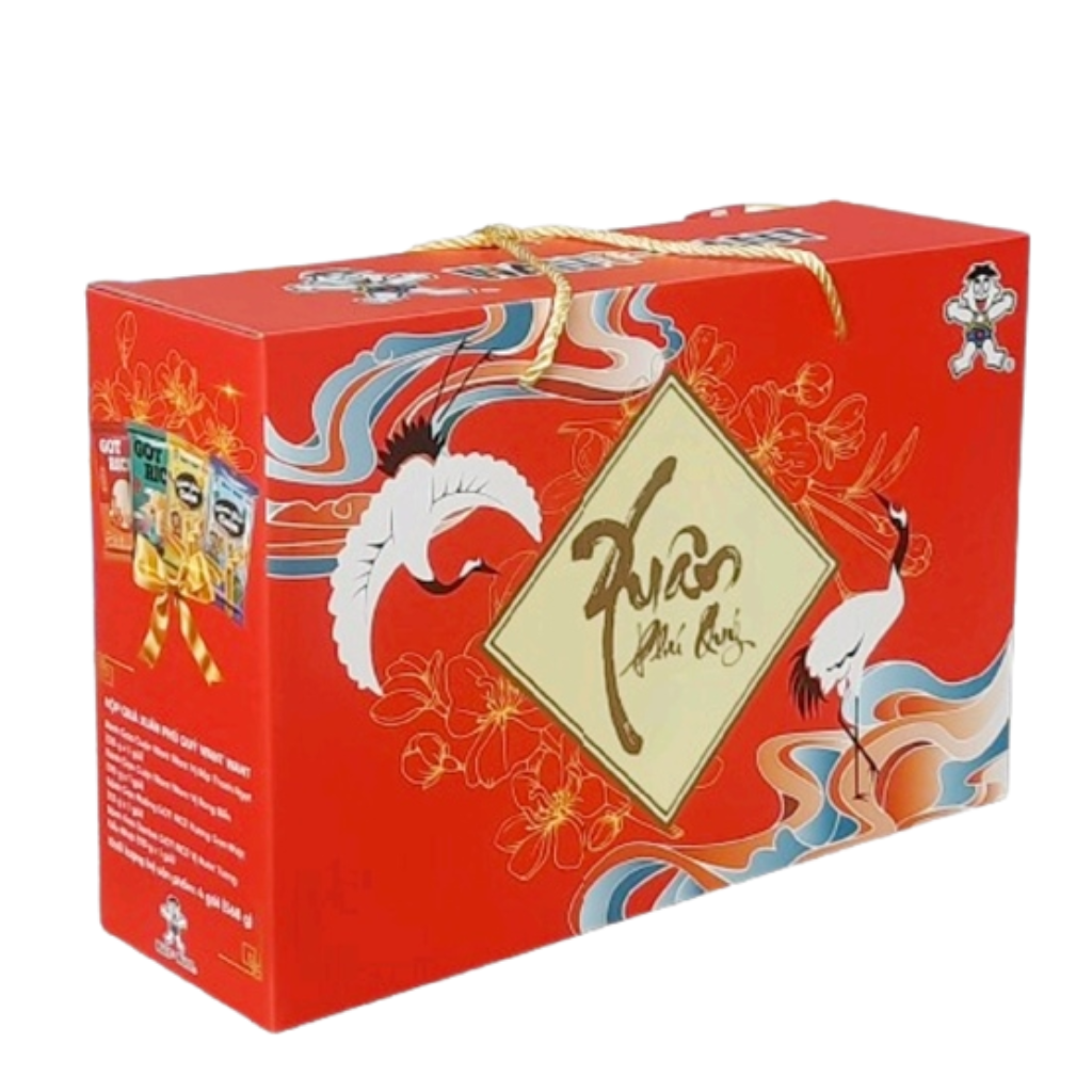 Tên gọi Xuân Phú Quý mang ý nghĩa chúc năm mới đủ đầy, tài lộc hanh thông và cuộc sống sung túc. Hộp quà là lời chúc đầu xuân nhẹ nhàng nhưng ý nghĩa, thể hiện sự quan tâm và mong muốn những điều tốt đẹp nhất dành cho người nhận trong năm mới.