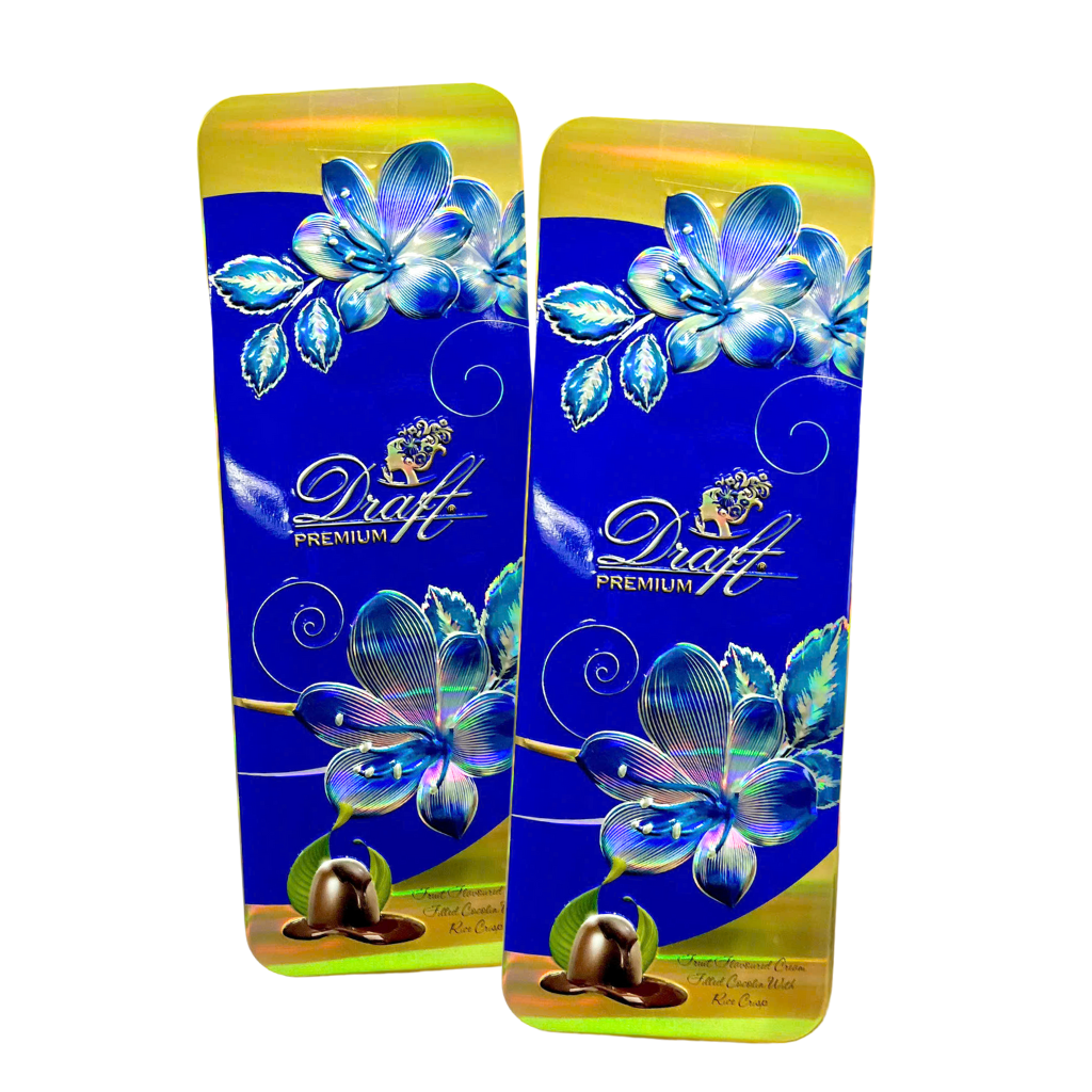 Kẹo Socola Hộp Thiếc Draft Premium Vị Trái Cây Nhân Cốm Giòn – 150g là món kẹo socola cao cấp, kết hợp vị trái cây thơm ngọt cùng nhân cốm giòn giòn đặc trưng. Sản phẩm nhập khẩu chất lượng, hộp thiếc sang trọng 150g, thích hợp dùng làm quà biếu, thưởng trà hoặc trưng bàn tiếp khách.