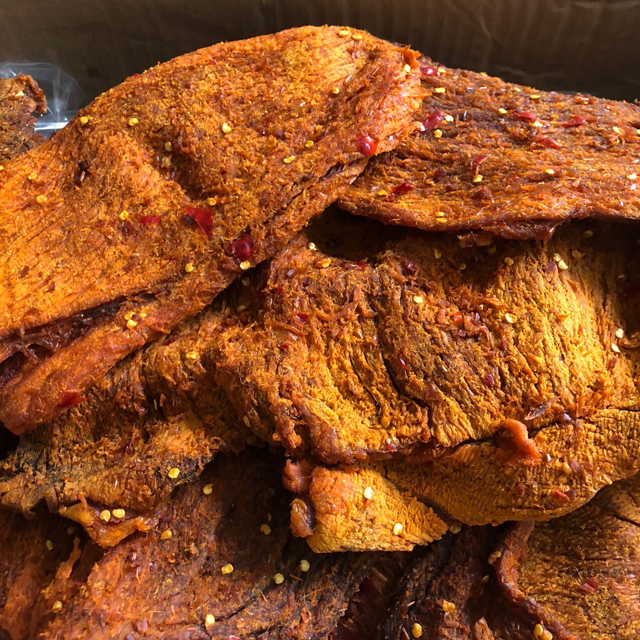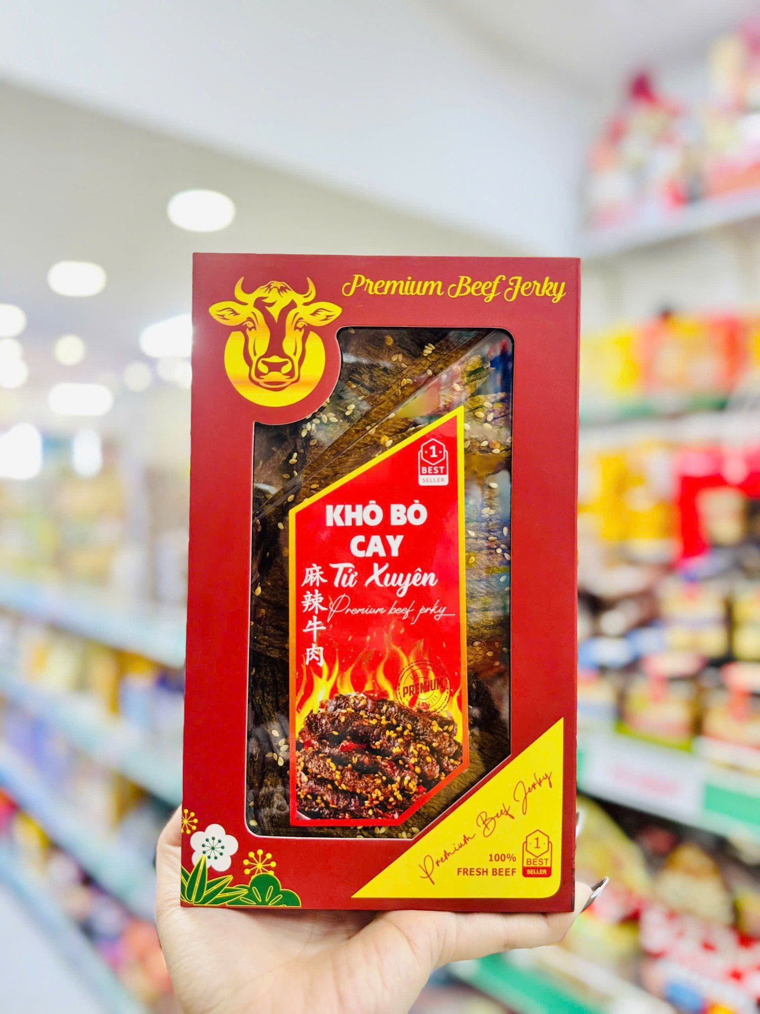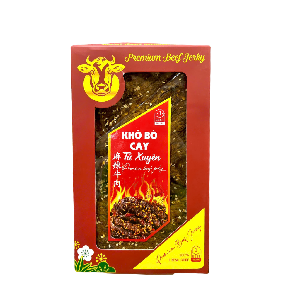 Khô bò cay Tứ Xuyên mang hương vị đặc trưng của ẩm thực Trung Hoa: cay nồng, thơm sâu, đậm đà và vô cùng cuốn hút. Miếng thịt bò mềm dai, thấm đều gia vị, kết hợp vị cay tê đặc trưng giúp món ăn trở thành “mồi bén” trong mọi dịp, đặc biệt là ngày Tết sum vầy.