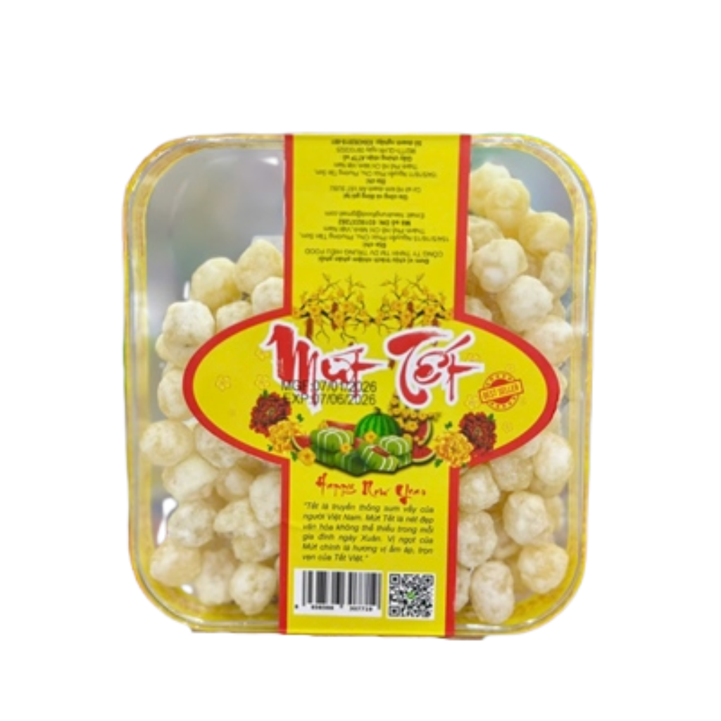 Trong khay mứt ngày Tết, hạt sen luôn là món mứt mang cảm giác nhẹ nhàng, tinh tế và trang nhã. Mứt Hạt Sen Tết 2026 - 400g (Hộp) có vị ngọt dịu, hạt sen bùi mềm, dễ thưởng thức, rất phù hợp để tiếp khách, nhâm nhi cùng trà nóng và gửi gắm lời chúc đầu năm an yên, sum vầy.