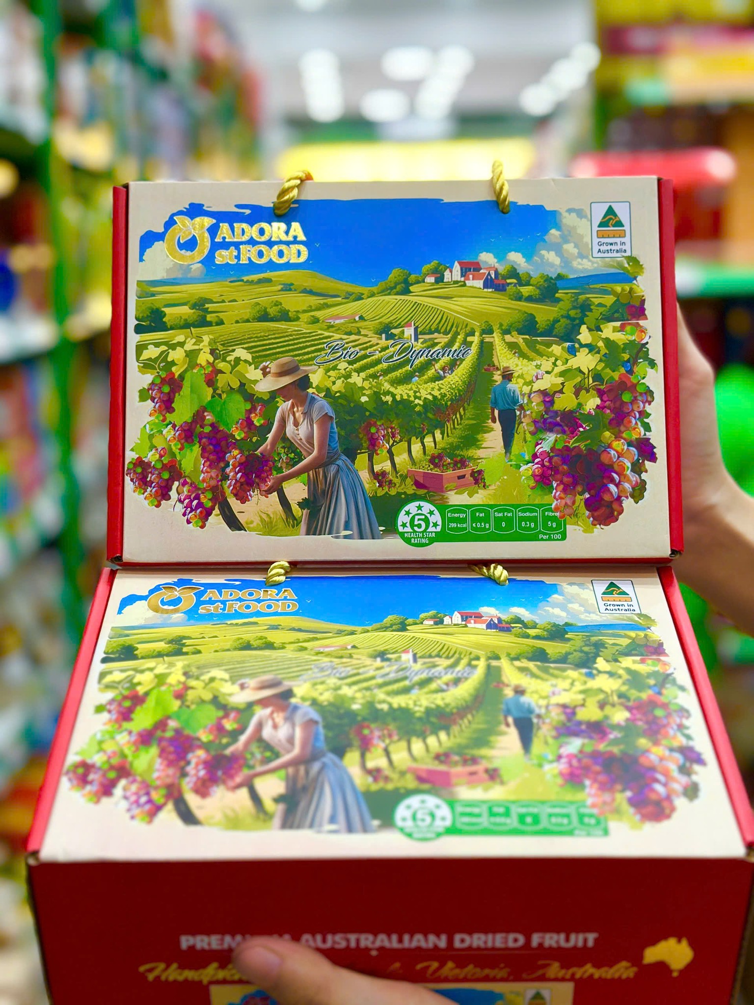 Nho Khô Cluster Flame ADORA ST FOOD – Hộp 1kg: ngọt đậm, dẻo mềm, thơm tự nhiên