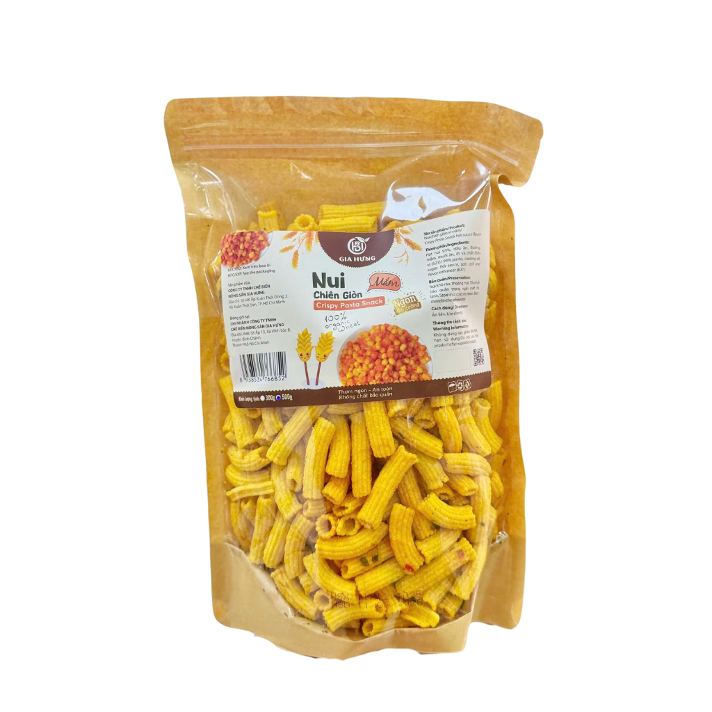 Nui Dài Chiên Giòn Gia Hưng - 500g | Nui dài chiên giòn rụm, vị mặn ngọt dễ ăn