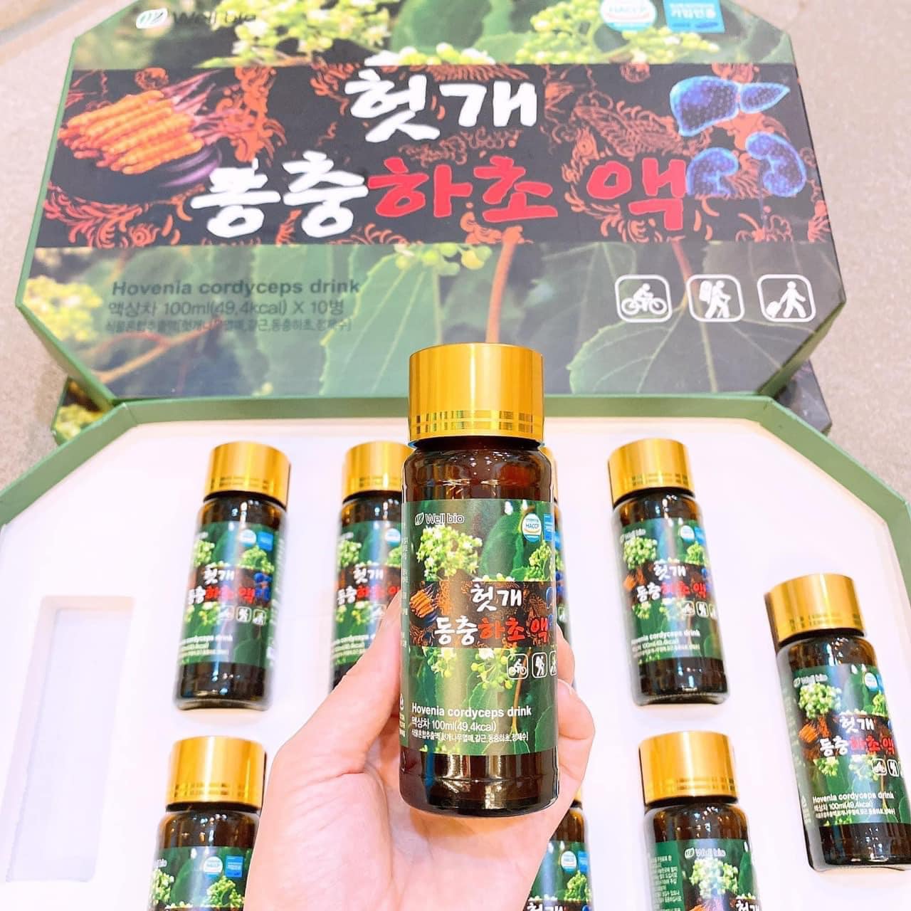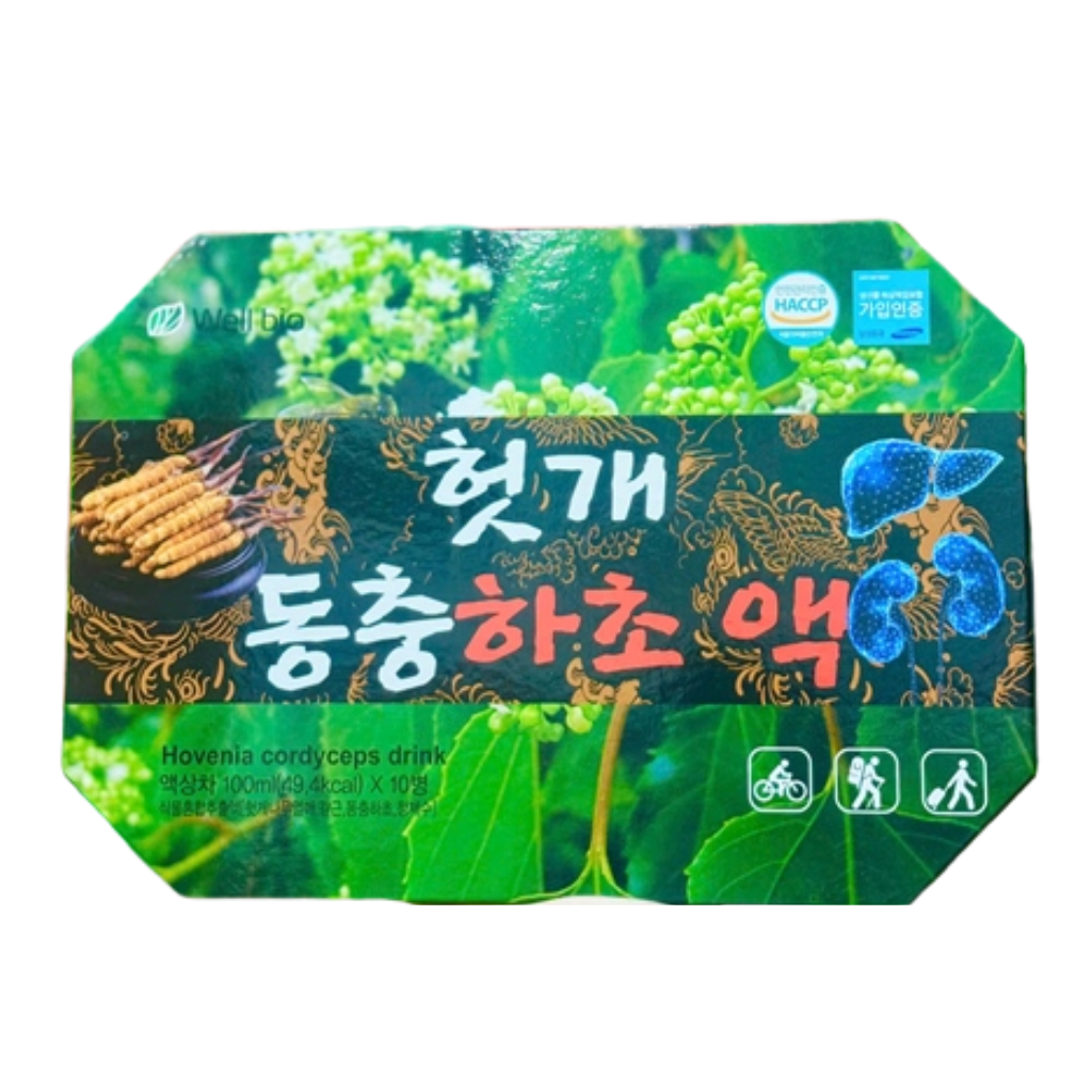 Nước Bổ Gan Đông Trùng Well Bio Hovenia Cordyceps Hàn Quốc - 10 chai x 100ml