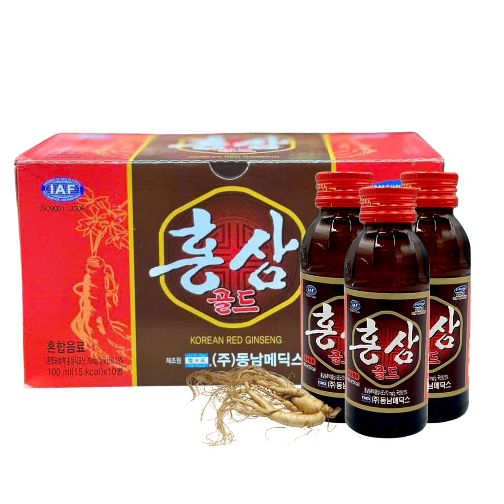 Nước Hồng Sâm Hàn Quốc Korean Red Ginseng - Hộp 10 chai x 100ml được chiết xuất từ hồng sâm Hàn Quốc chất lượng cao, mang đến hương vị đậm đà cùng nhiều dưỡng chất quý giá. Đây là thức uống lý tưởng để bồi bổ cơ thể, duy trì năng lượng mỗi ngày và làm quà biếu tặng ý nghĩa.
