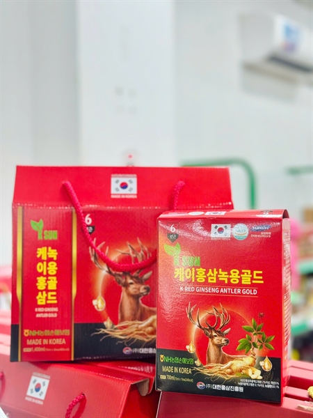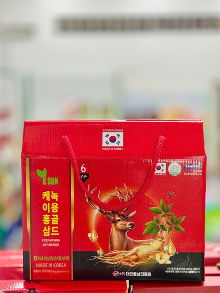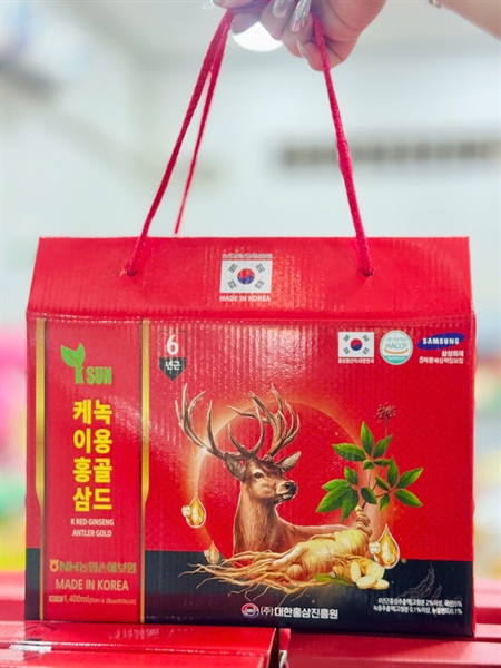 Nước Hồng Sâm Nhung Hươu là sự hòa quyện tinh tế giữa hồng sâm Hàn Quốc 6 năm tuổi và chiết xuất nhung hươu tự nhiên, mang đến hương vị thơm dịu, dễ uống và giàu dinh dưỡng. Sản phẩm giúp bồi bổ cơ thể, hỗ trợ duy trì sức khỏe và thích hợp làm quà biếu sang trọng.