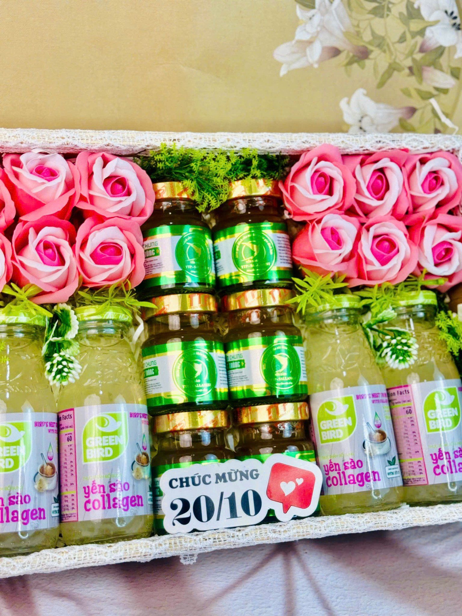 Ngày Phụ Nữ Việt Nam 20/10 là dịp đặc biệt để gửi tặng yêu thương đến những người phụ nữ quan trọng trong cuộc sống. Set Quà Tặng 20/10 - Set 2 được thiết kế sang trọng, kết hợp 4 chai Nước Yến Sào GREEN BIRD cùng 6 hũ Tổ Yến SALLANEST, mang đến món quà vừa cao cấp vừa đầy ý nghĩa.