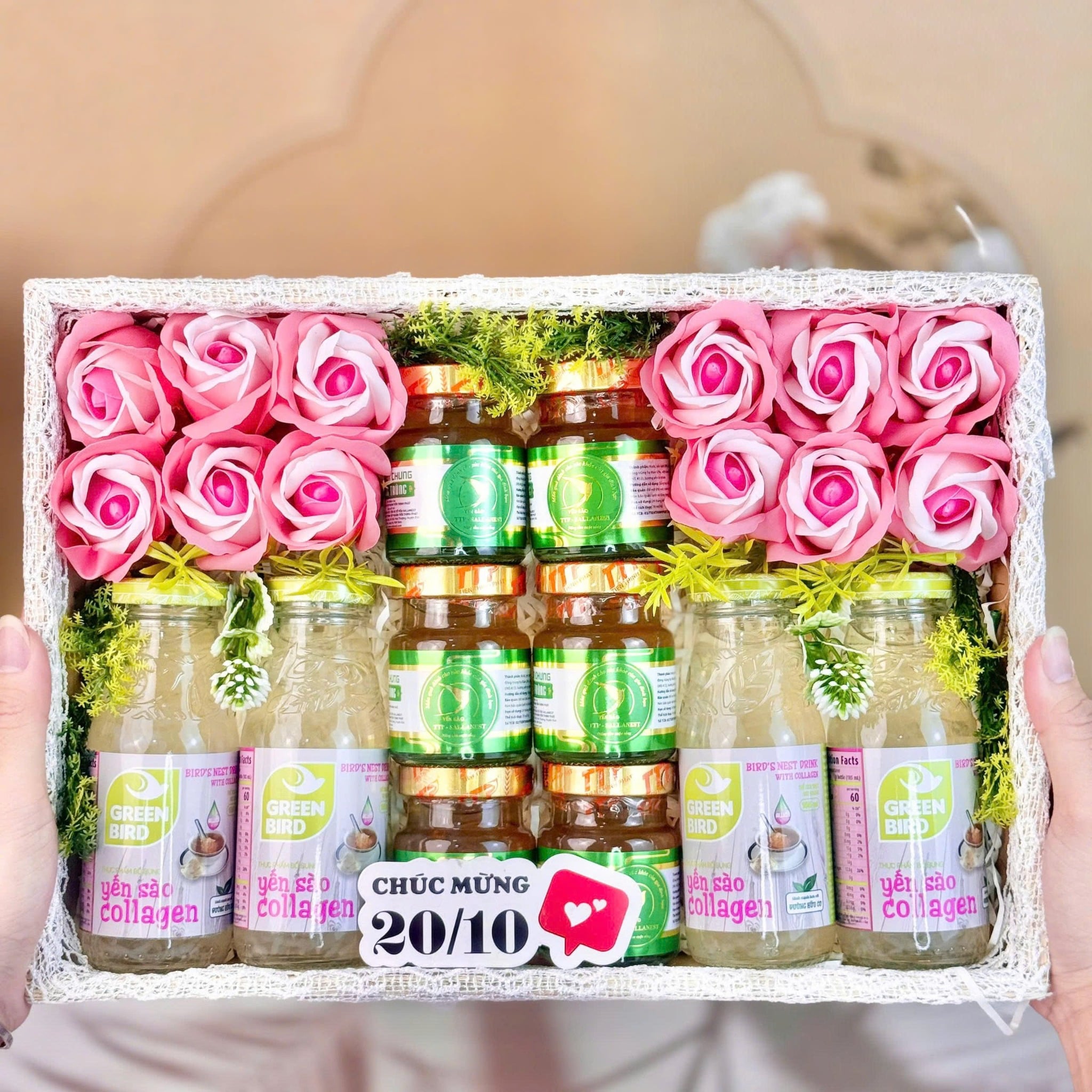 Set Quà Tặng 20/10 - Set 2 | 4 chai Nước Yến Sào GREEN BIRD & 6 hũ Tổ Yến SALLANEST