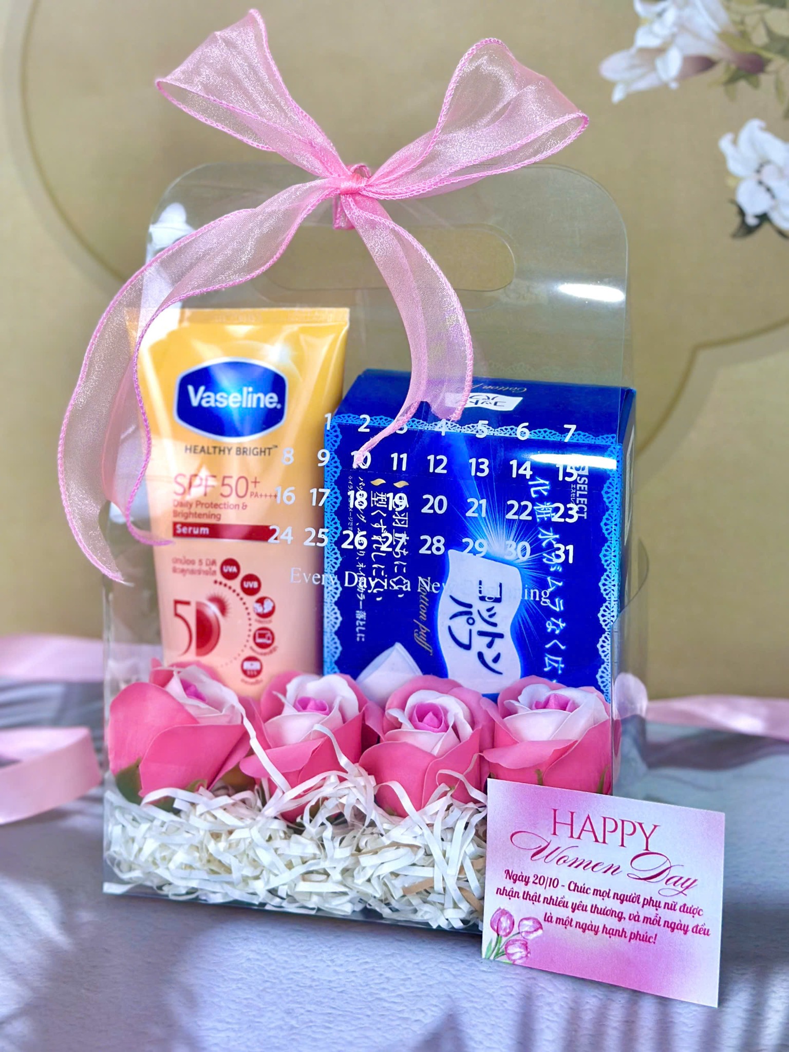 Mỗi món quà trong set là lời nhắn gửi dịu dàng: “Bạn xứng đáng được yêu thương và chăm sóc mỗi ngày.” Đây không chỉ là món quà vật chất, mà còn là cách thể hiện sự quan tâm chân thành, giúp người phụ nữ thêm tự tin và rạng rỡ.