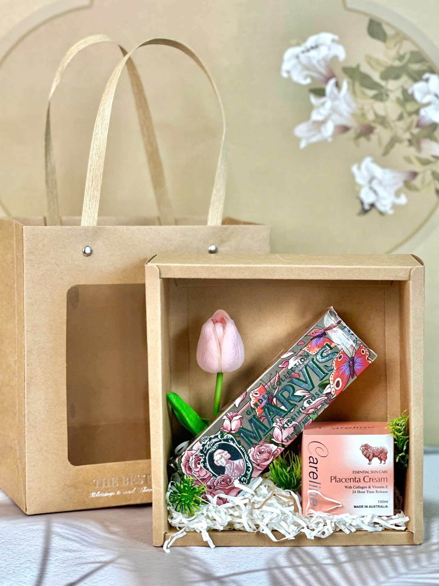- Sự kết hợp độc đáo giữa Marvis Kissing Rose với hương thơm tinh tế và kem dưỡng Careline Lanolin giúp chăm sóc làn da mềm mịn, khỏe khoắn.