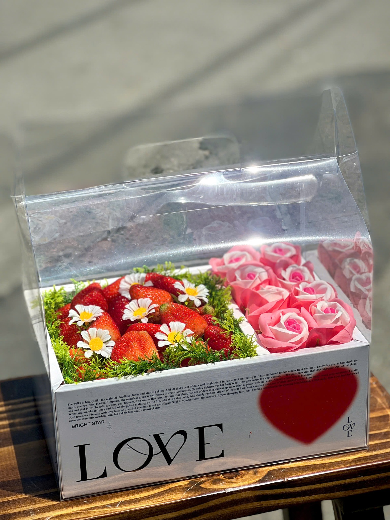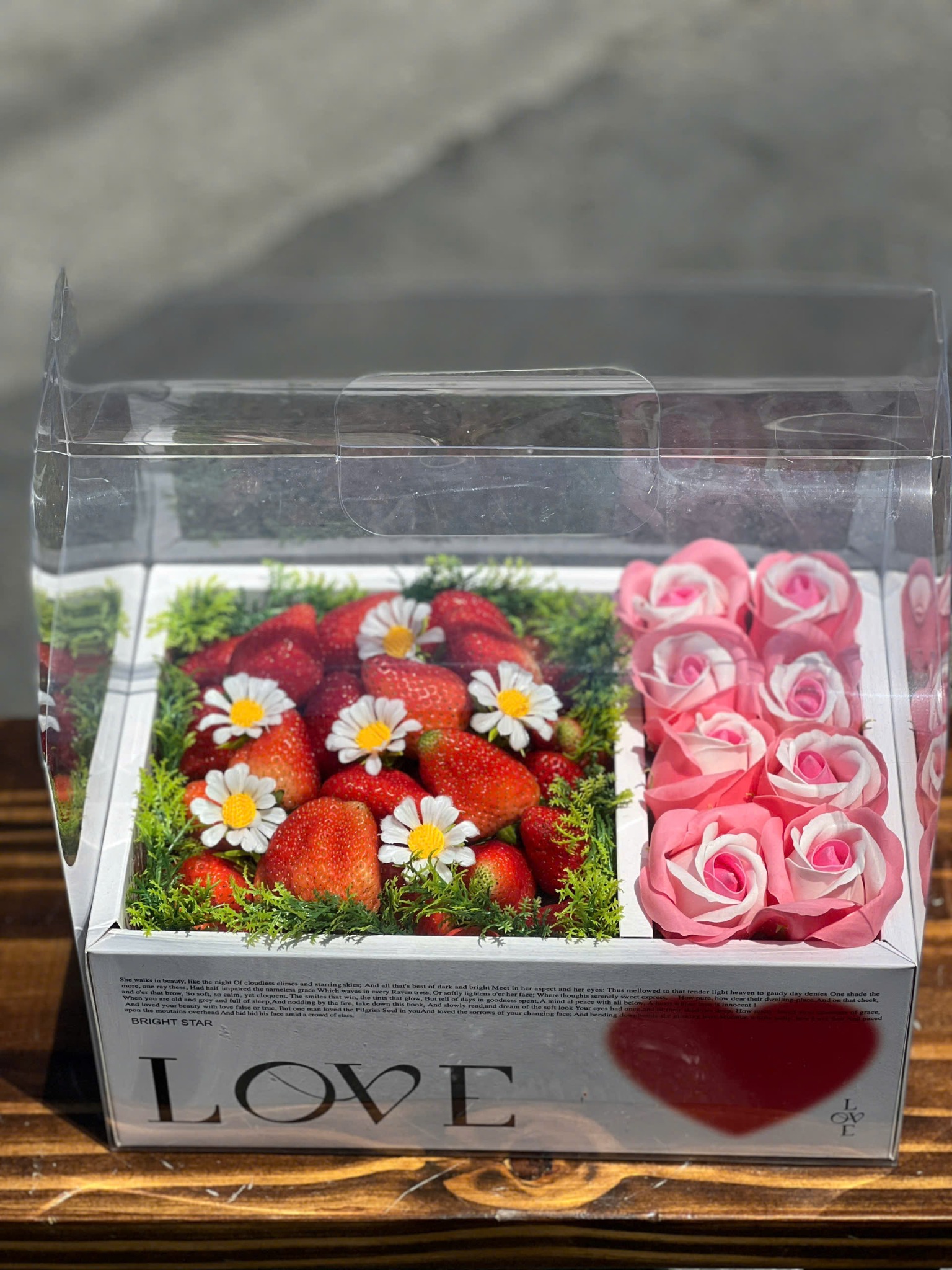 Set quà là biểu tượng của sự quan tâm và lòng biết ơn. Dâu tây tươi tượng trưng cho niềm vui và năng lượng tích cực, hoa hồng là biểu trưng của tình yêu, còn thiệp chúc là sợi dây kết nối cảm xúc chân thành. Mỗi chi tiết trong set quà đều được chọn lựa kỹ lưỡng để mang đến trải nghiệm trọn vẹn cho người nhận.