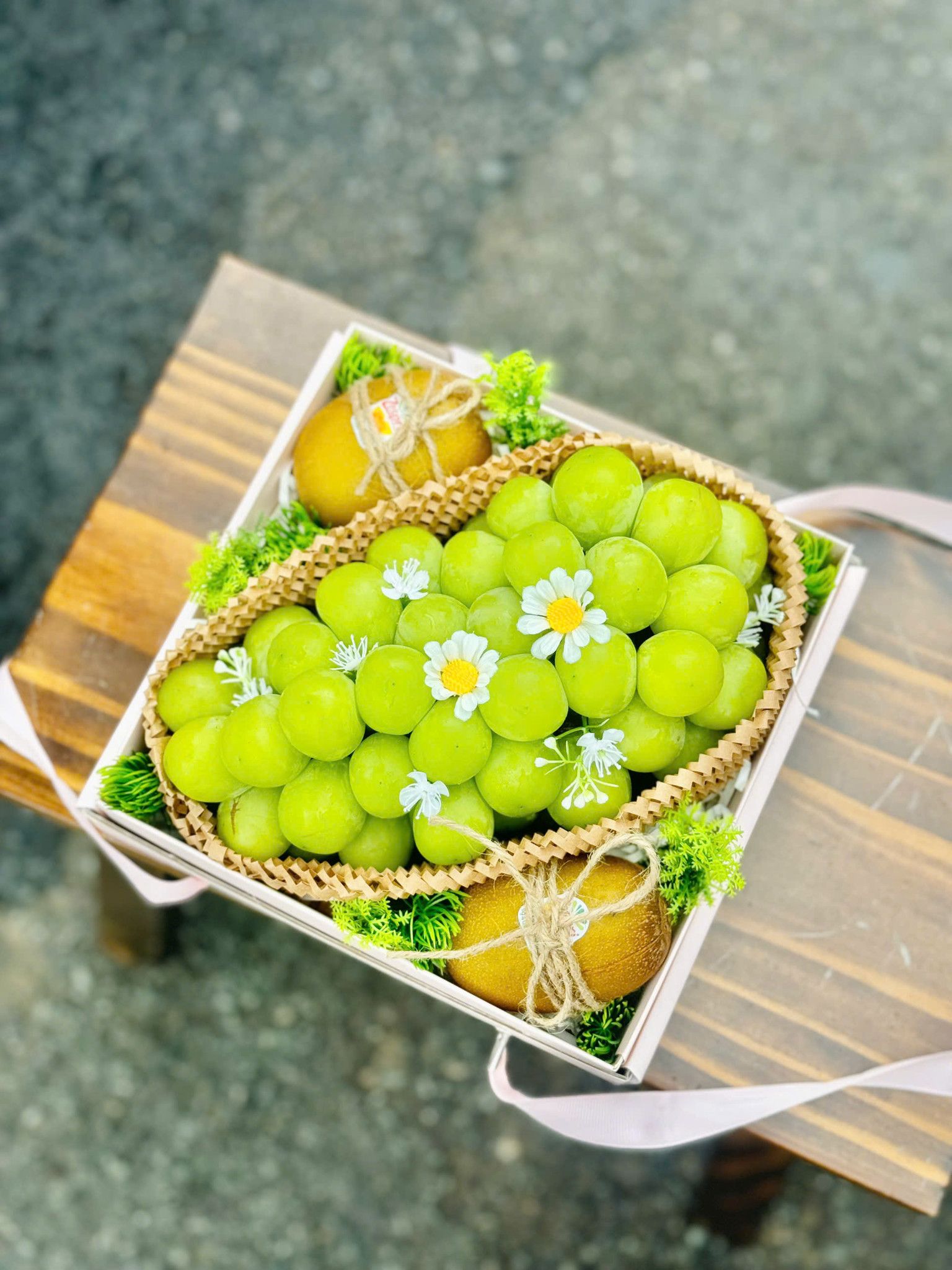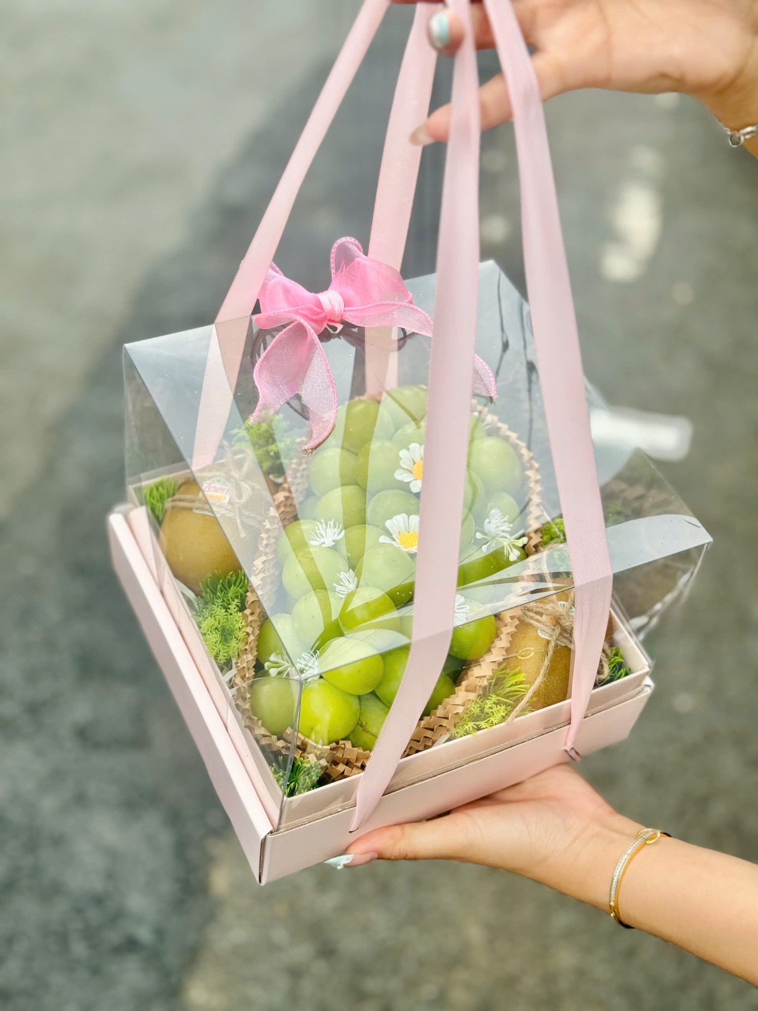 Mỗi sản phẩm trong giỏ quà đều mang một thông điệp riêng: Nho mẫu đơn tượng trưng cho sự quý phái và thành công, Kiwi vàng biểu trưng cho sức khỏe và may mắn. Kết hợp cùng hoa và thiệp chúc, set quà trở thành biểu tượng của tình cảm chân thành và sự biết ơn gửi đến người nhận.