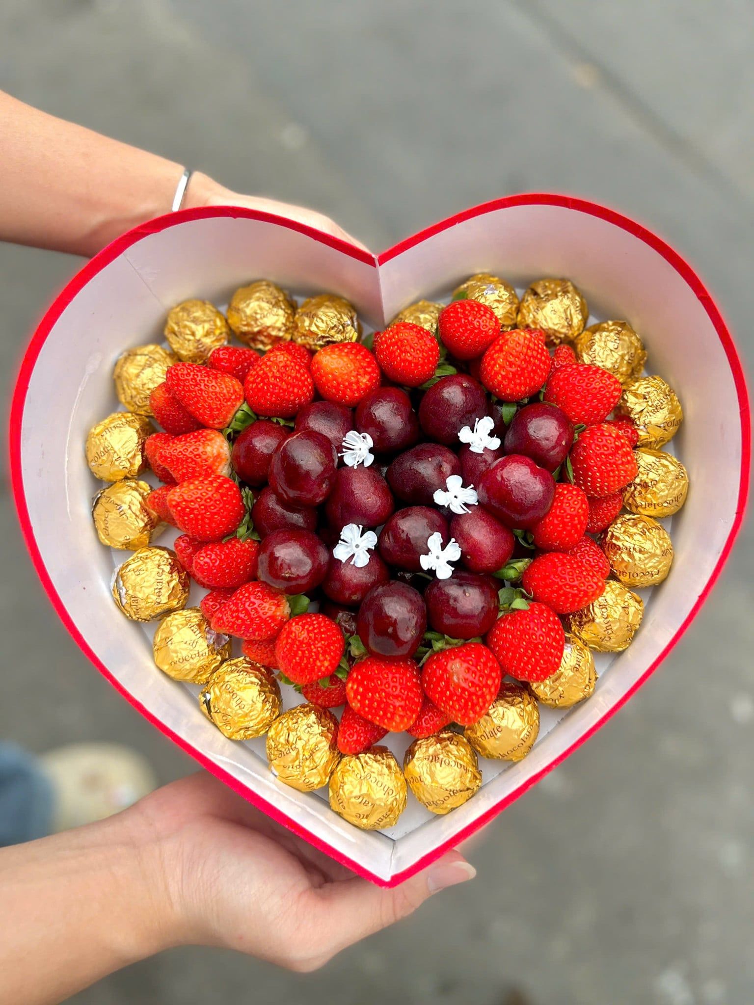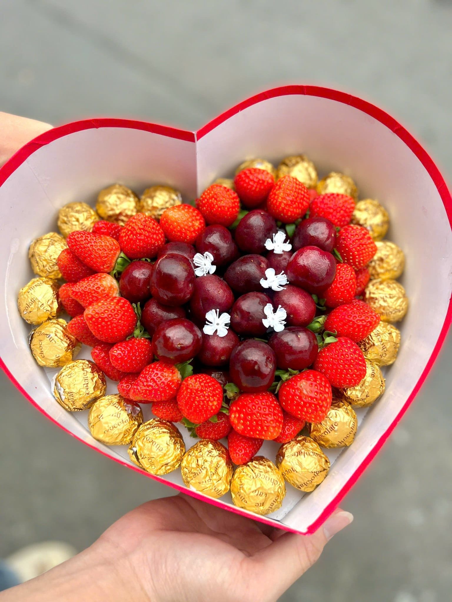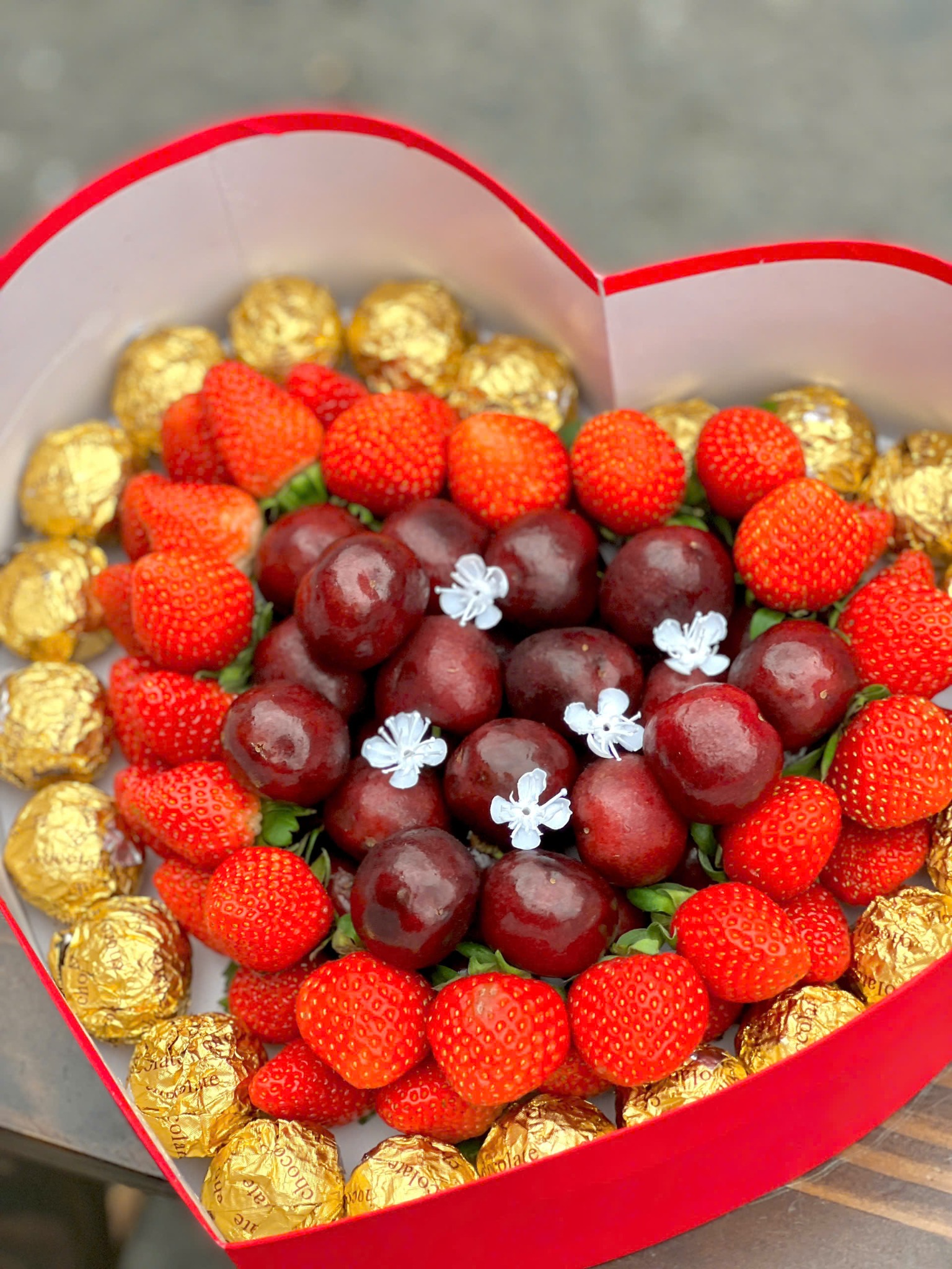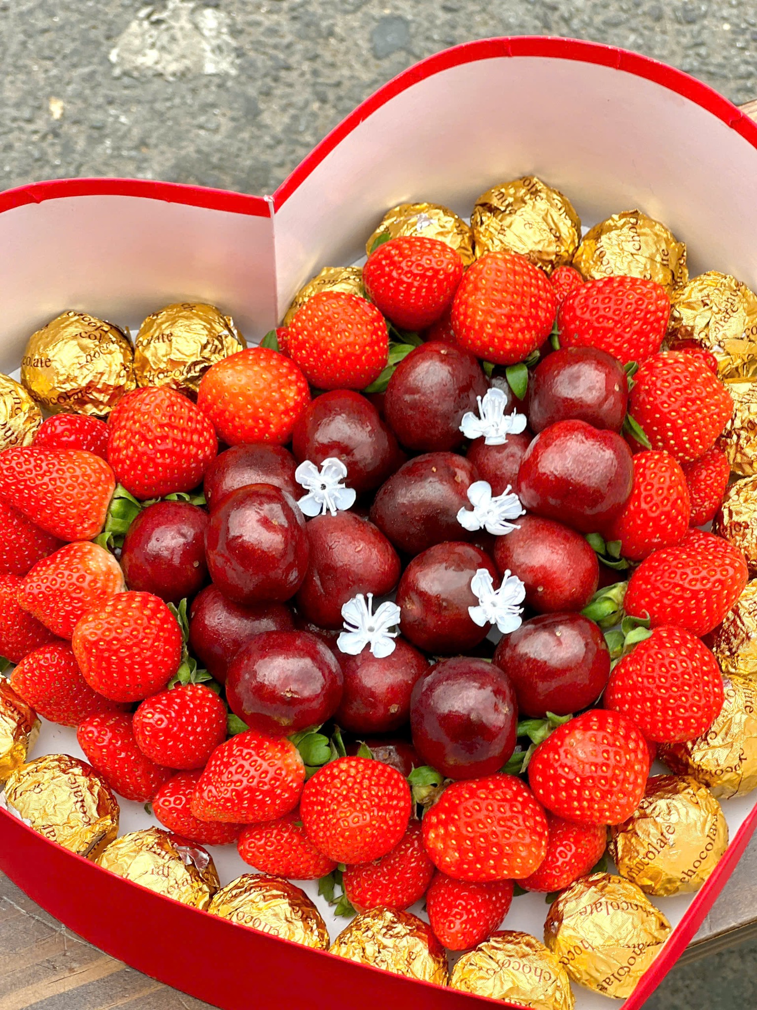 Thành phần: Cherry mật, dâu tây Đà Lạt, socola viên cao cấp