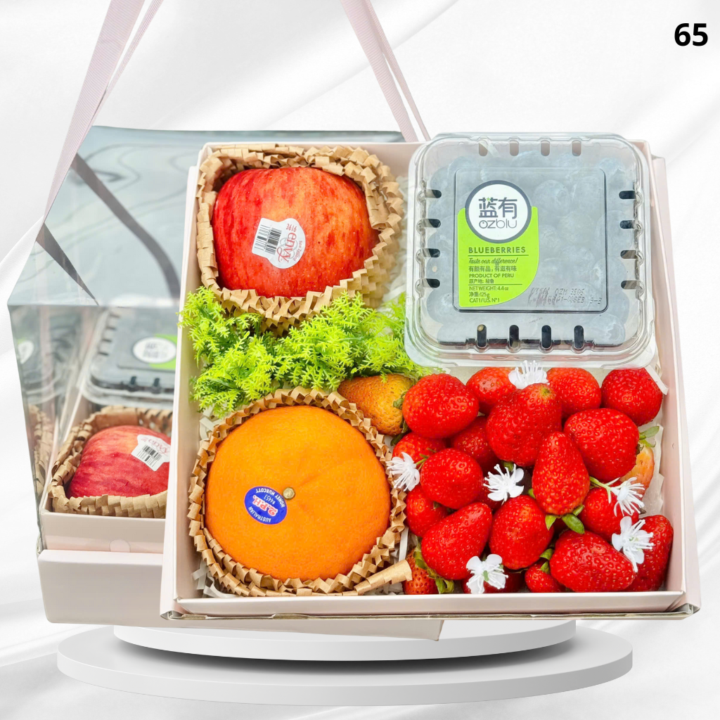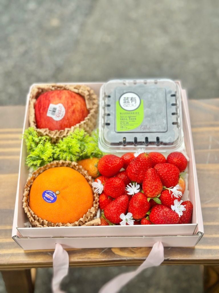 Dâu tây tượng trưng cho sự chân thành, táo Envy thể hiện sự trân trọng, quýt Úc mang ý nghĩa vui vẻ viên mãn, việt quất là lời chúc sức khỏe dài lâu