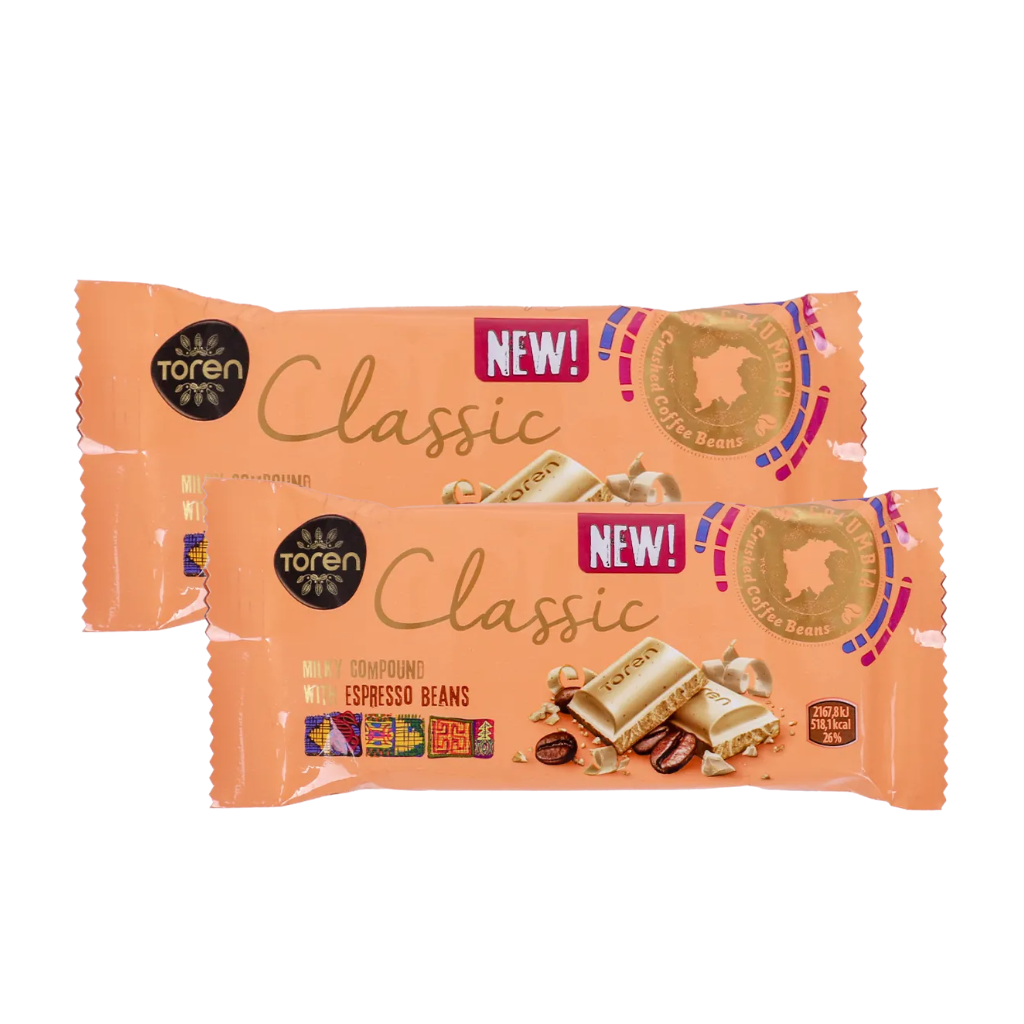 Thanh Socola Toren Classic Hạt Cà Phê - 52g là sự hòa quyện tinh tế giữa vị socola béo mịn và hương cà phê đậm đà, mang đến trải nghiệm vừa ngọt ngào vừa tỉnh táo đầy cuốn hút. Mỗi thanh socola là sự kết hợp hoàn hảo giữa hạt cà phê rang giòn và lớp socola sánh mịn, tạo nên hương vị khó quên ngay từ miếng đầu tiên.