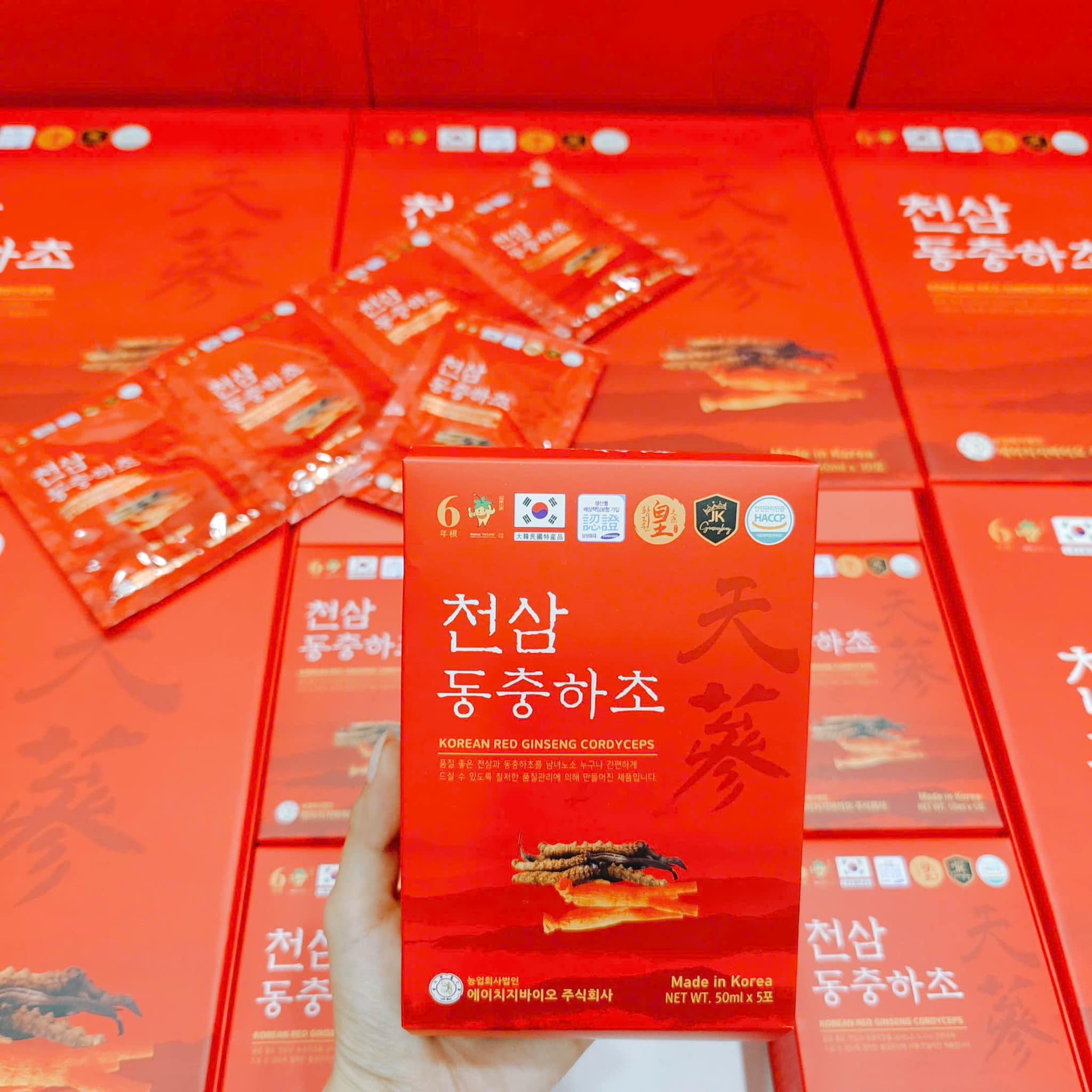 Chiết xuất hồng sâm kết hợp đông trùng hạ thảo cao cấp.